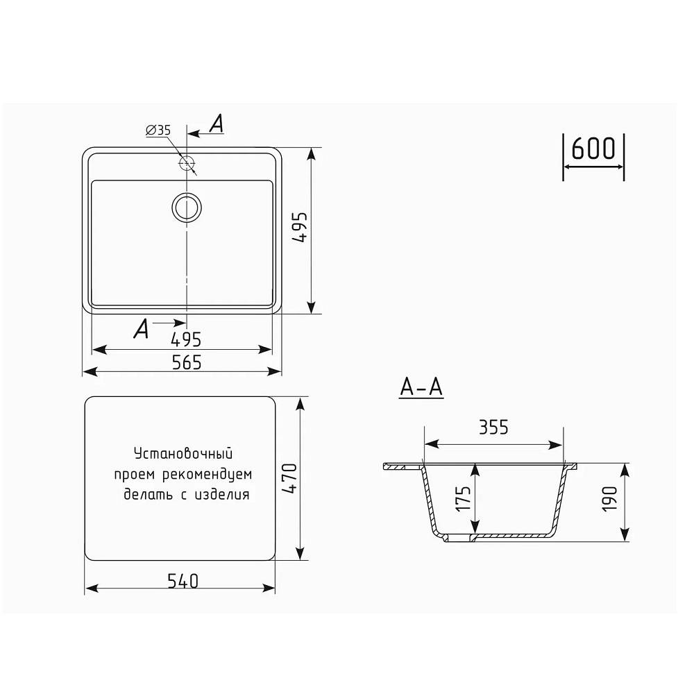 - Прямоугольная кухонная мойка Maretti Kitchen 565 с отверстием для смесителя идеально подойдёт для небольшой кухни.