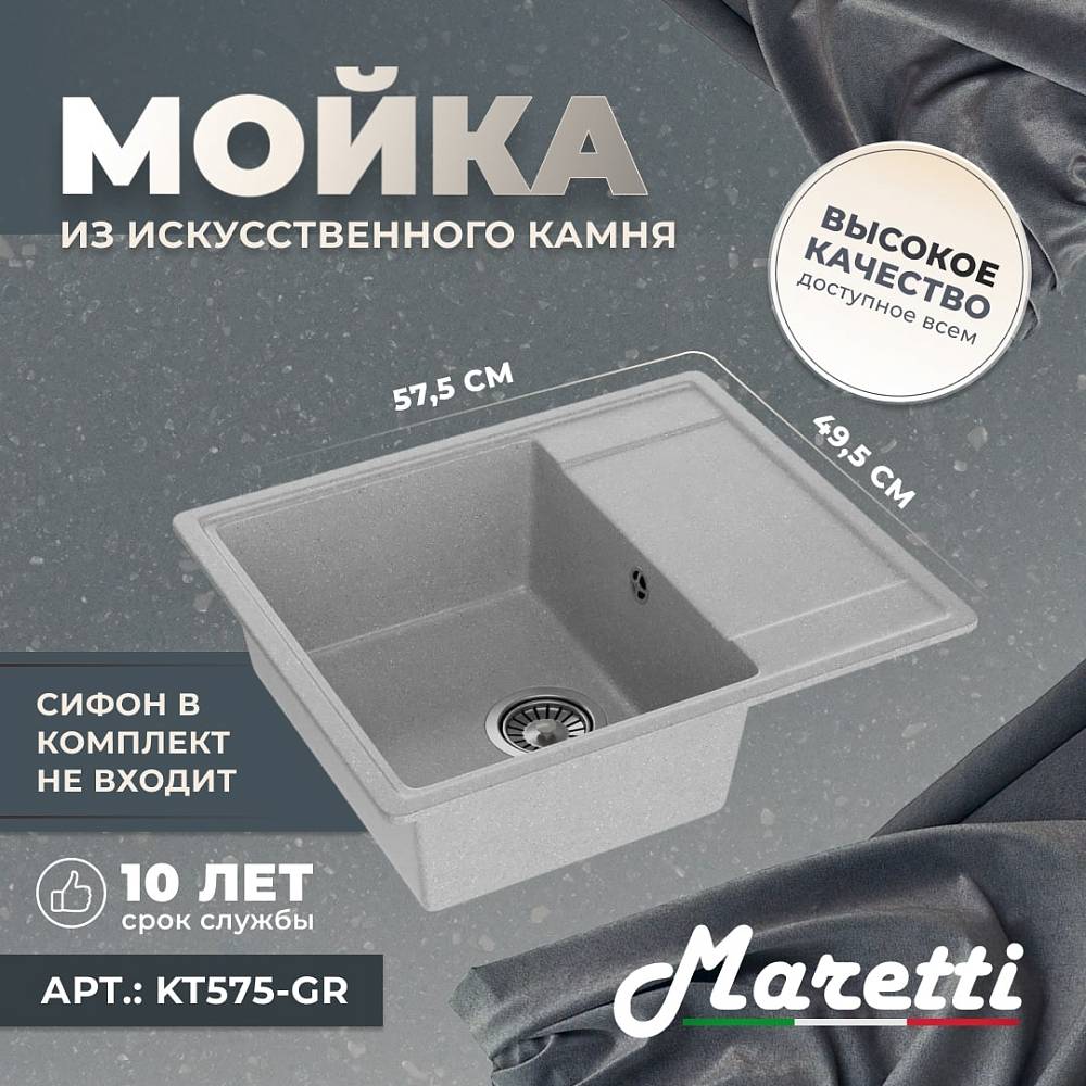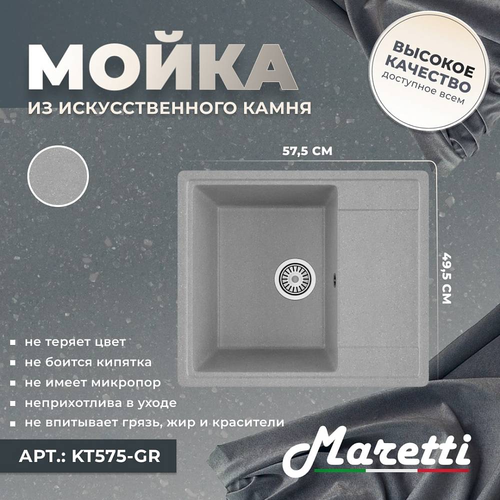 - Односекционная реверсивная мойка Maretti Kitchen 575 с плоским крылом идеально подойдёт для небольшой кухни.