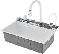 | Оснащение | сифон, разделочная доска, коландер, дозатор, смеситель, ополаскиватель стаканов, дисплей |