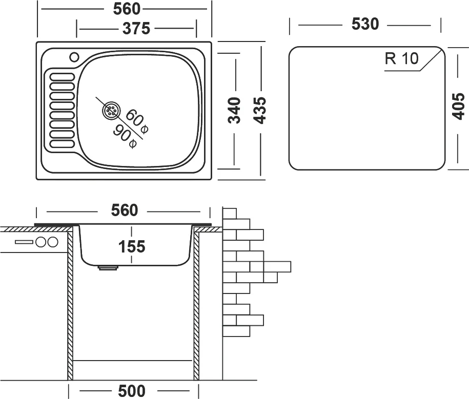 | Толщина материала мойки, мм | 0.5 |