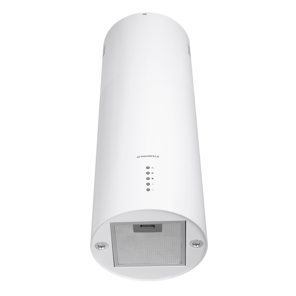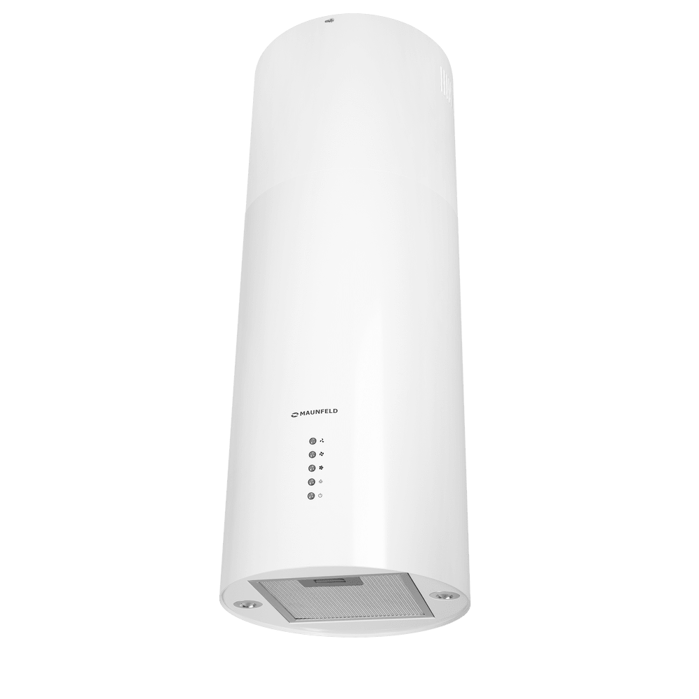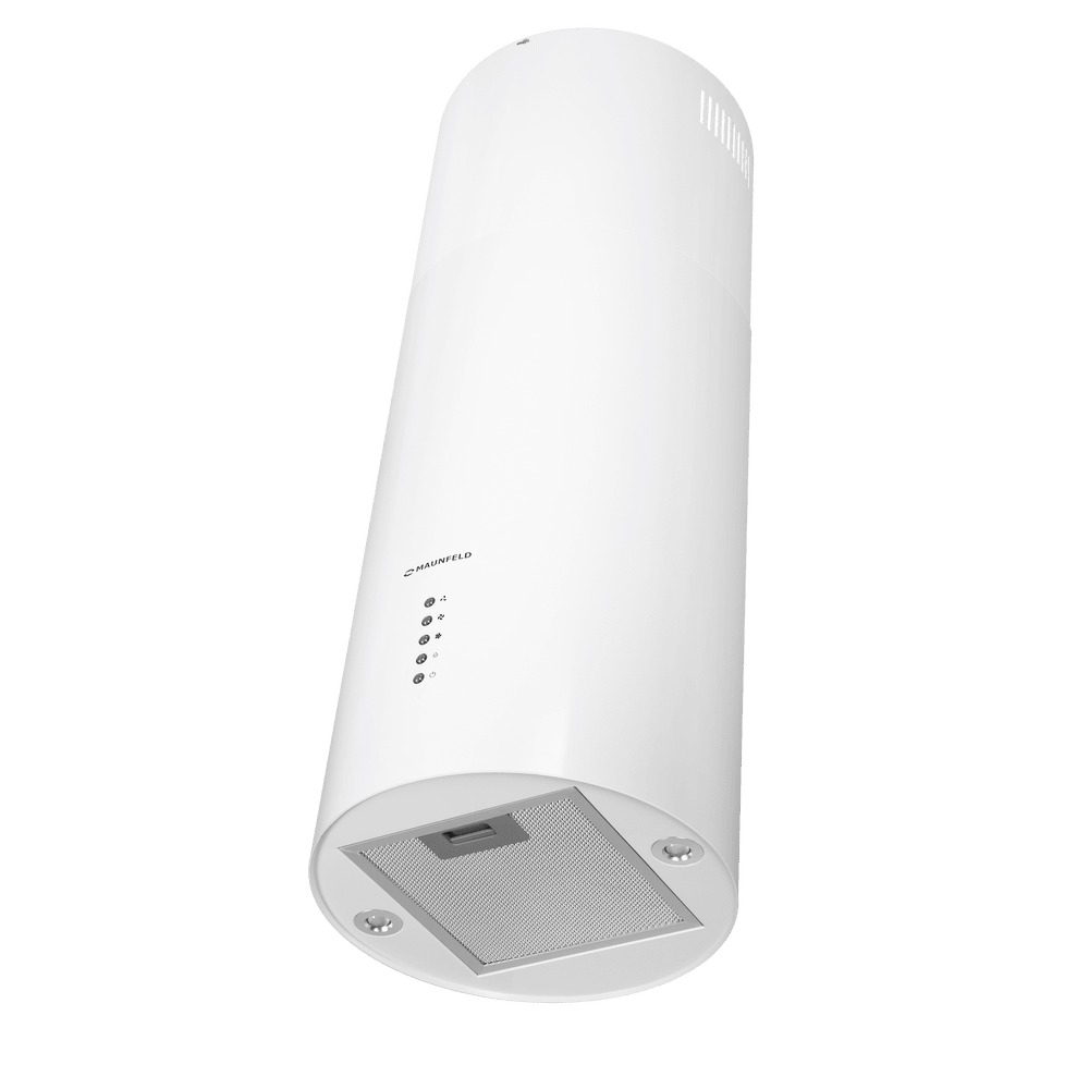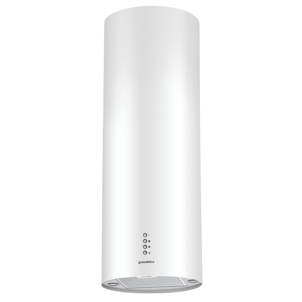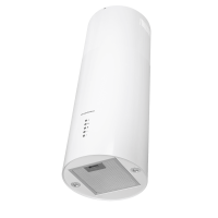 - Корпус цилиндрической формы монтируется на потолок над варочной поверхностью. В нижнем торце вытяжки расположен специальный многослойный жироулавливающий фильтр, который легко вынимается и полностью разбирается для чистки.