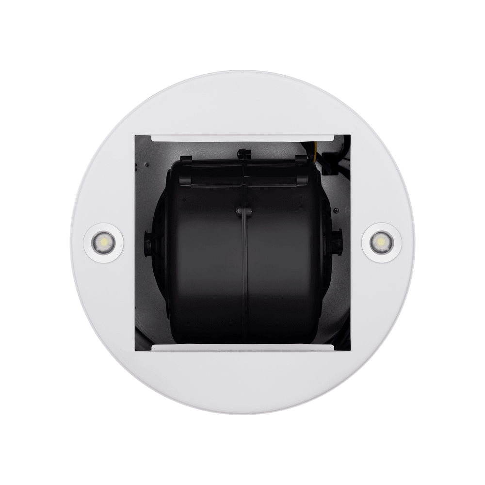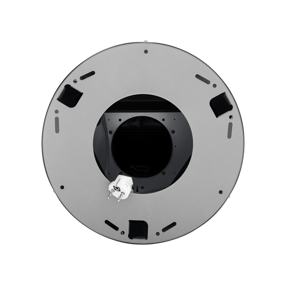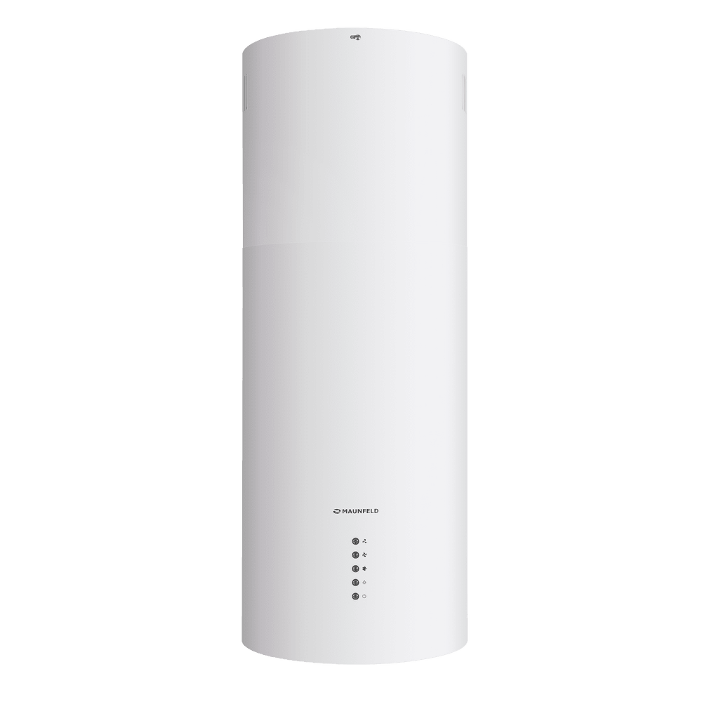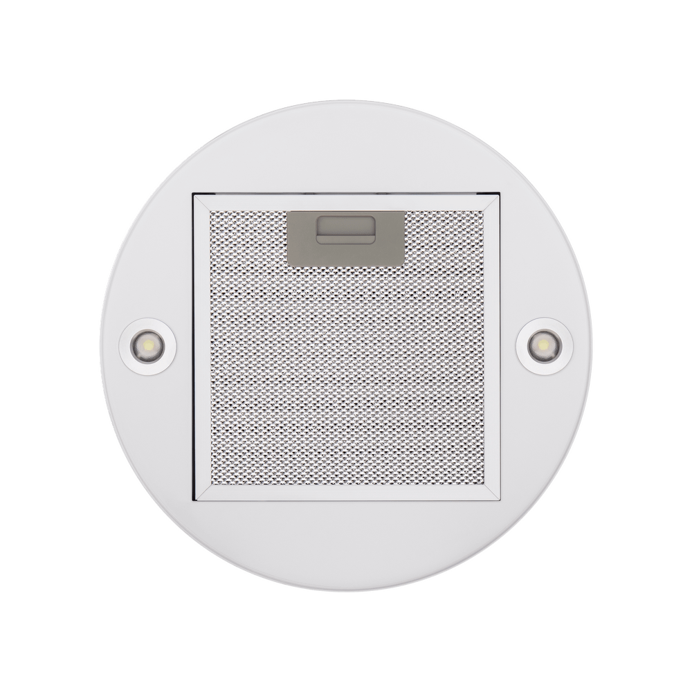- Корпус цилиндрической формы монтируется на потолок над варочной поверхностью. В нижнем торце вытяжки расположен специальный многослойный жироулавливающий фильтр, который легко вынимается и полностью разбирается для чистки.