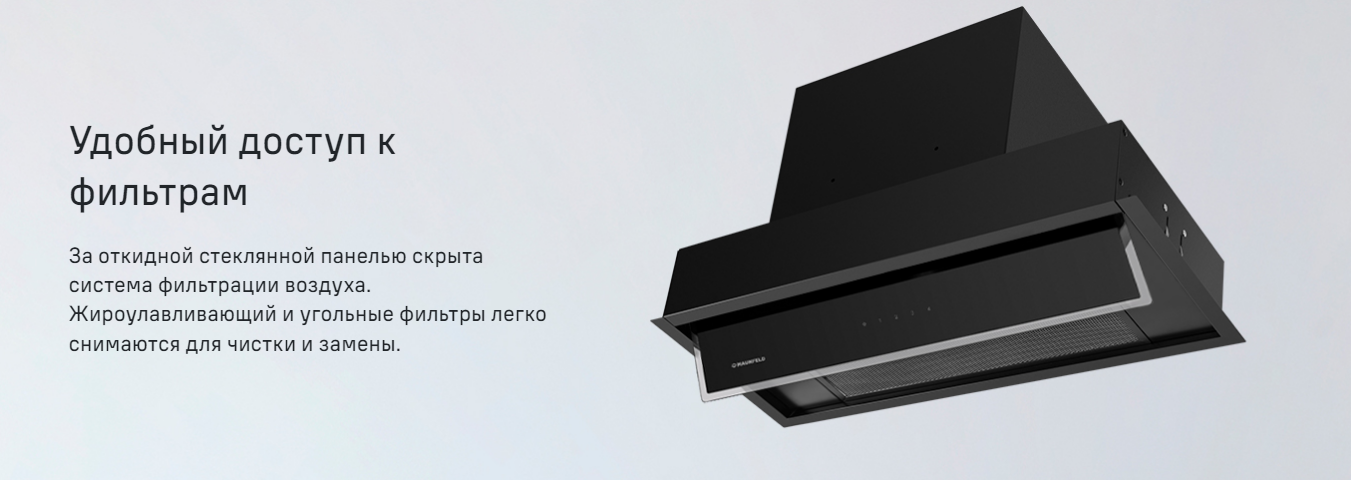- Модель монтируется в навесной шкаф над поверхностью плиты.