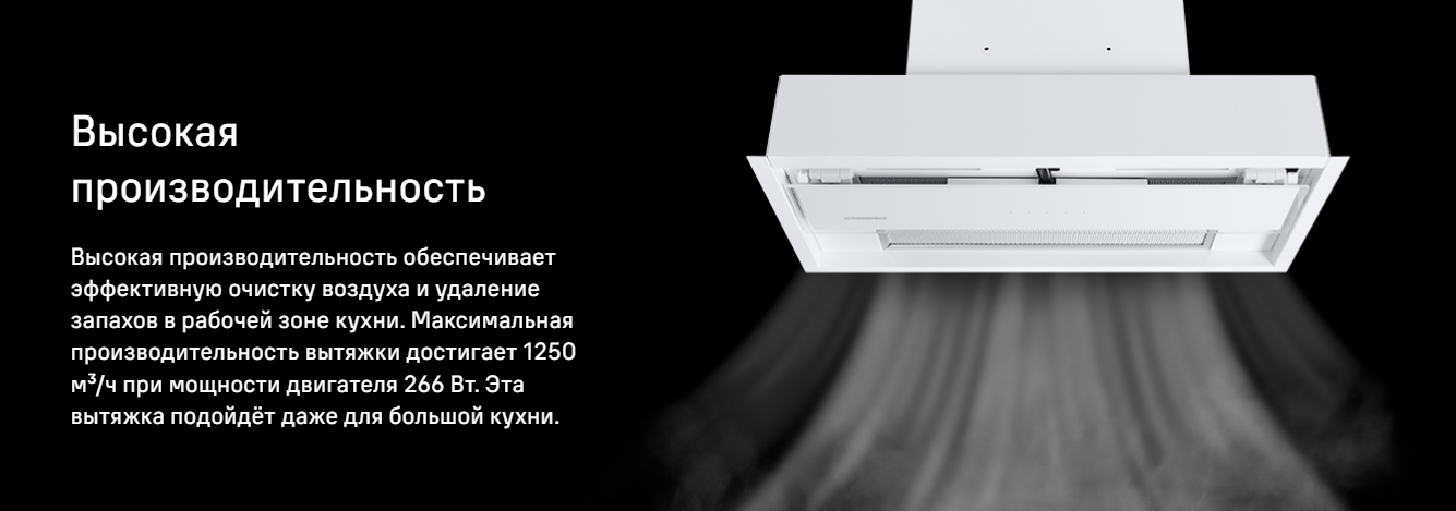 - Ультрасовременная встраиваемая кухонная вытяжка шириной 60 см - это беспрецедентное решение для кухни очень большой площади (до 50 кв.м).