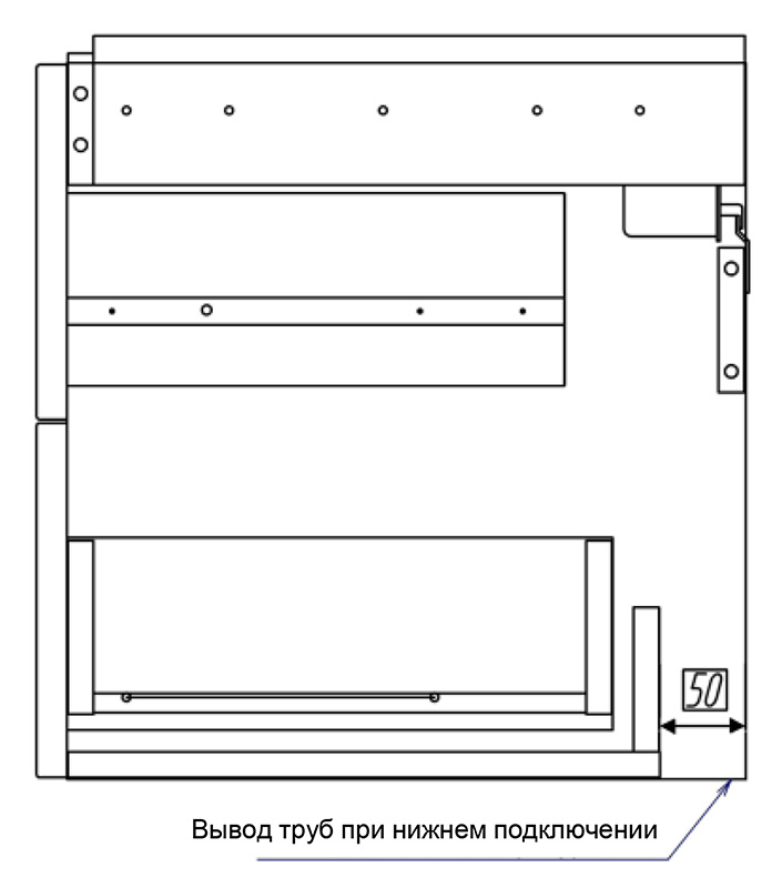 - Дополнительно организовано нижнее подключение труб водоснабжения и канализации