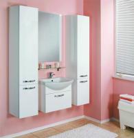 Набор Ария 65 состоит из подвесной тумбы с раковиной и зеркала.. В тумбе за фасадом расположен ящик из влагостойкой ДСП со вставками, организующими его пространство. Ящик установлен на направляющие полного выдвижения немецкого производителя фурнитуры GRASS, благодаря чему им удобно пользоваться даже с керамической раковиной, выступающей вперед. Зеркало выполнено в популярном стиле минимализма, не занимает много места и при желании может быть укомплектовано полкой Альпина 65.