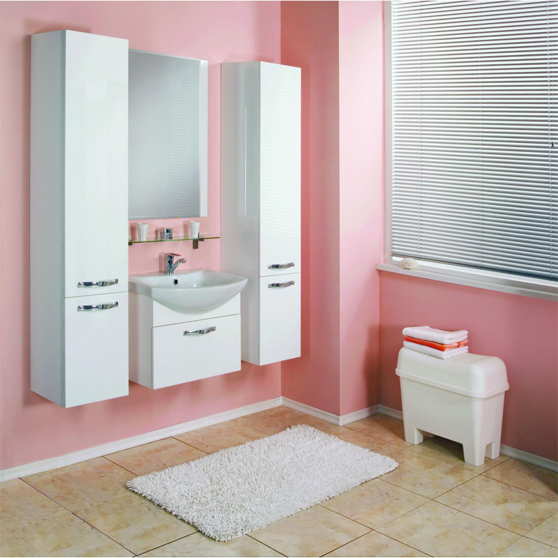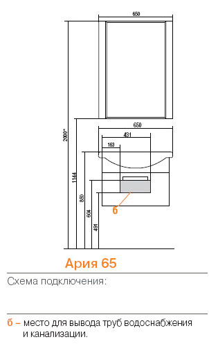 Набор Ария 65 состоит из подвесной тумбы с раковиной и зеркала.. В тумбе за фасадом расположен ящик из влагостойкой ДСП со вставками, организующими его пространство. Ящик установлен на направляющие полного выдвижения немецкого производителя фурнитуры GRASS, благодаря чему им удобно пользоваться даже с керамической раковиной, выступающей вперед. Зеркало выполнено в популярном стиле минимализма, не занимает много места и при желании может быть укомплектовано полкой Альпина 65.