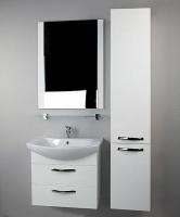 Подвесная модель из коллекции Ария. В тумбе два выдвижных ящика из влагостойкой ДСП, верхний из которых снабжен организацией пространства. Зеркало выполнено в популярном минималистическом стиле, не занимает много места и при желании может быть укомплектовано полкой Альпина 65.