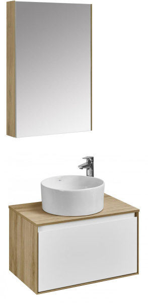 - Корпус и внутренняя организация тумб изготовлены из влагостойкой ЛДСП, имитирующей текстуру дерева, а фасад выполнен из влагостойкой ЛДСП в покраске белый глянец.