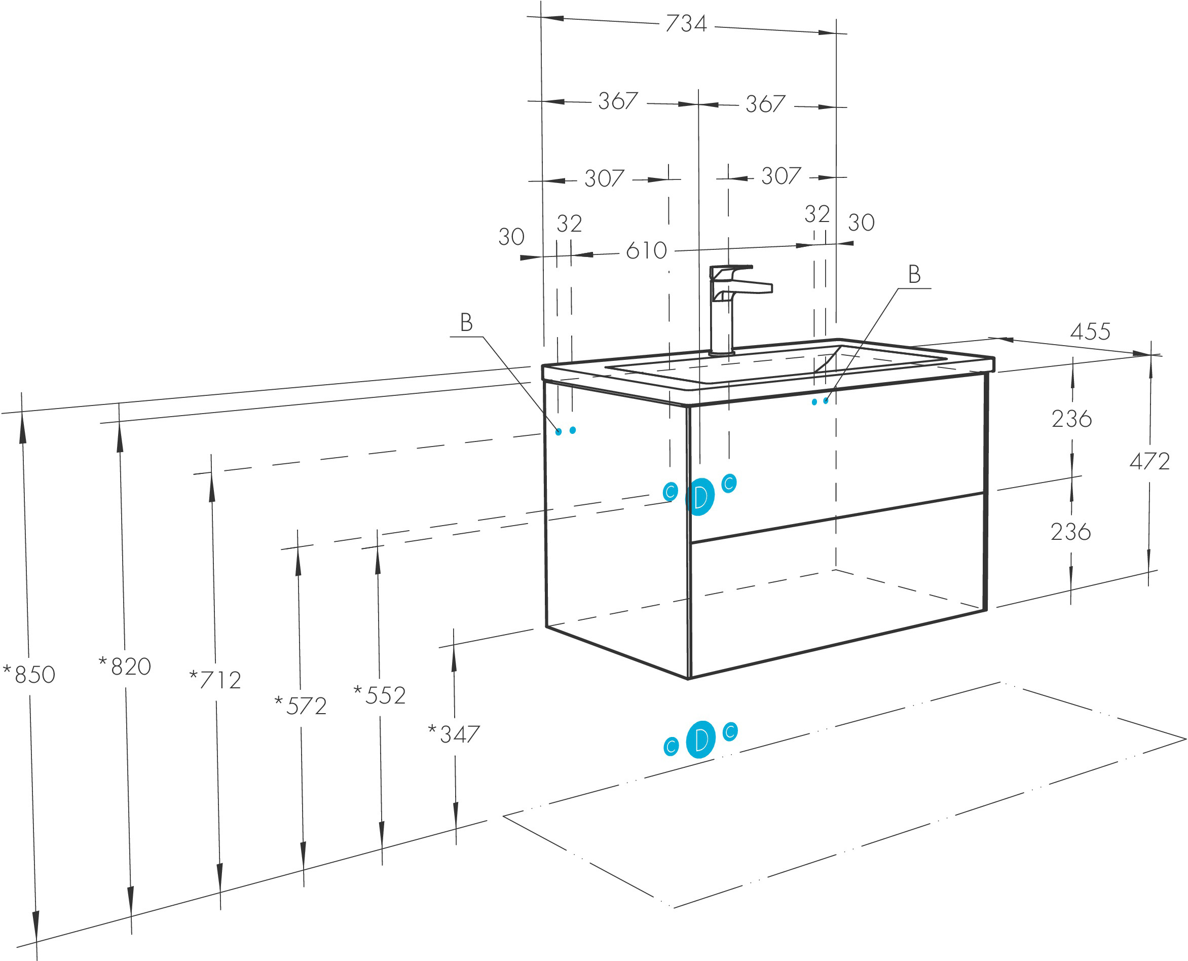 - Все внутренние детали тумбы выполнены в тон фасадов – цвета антрацит