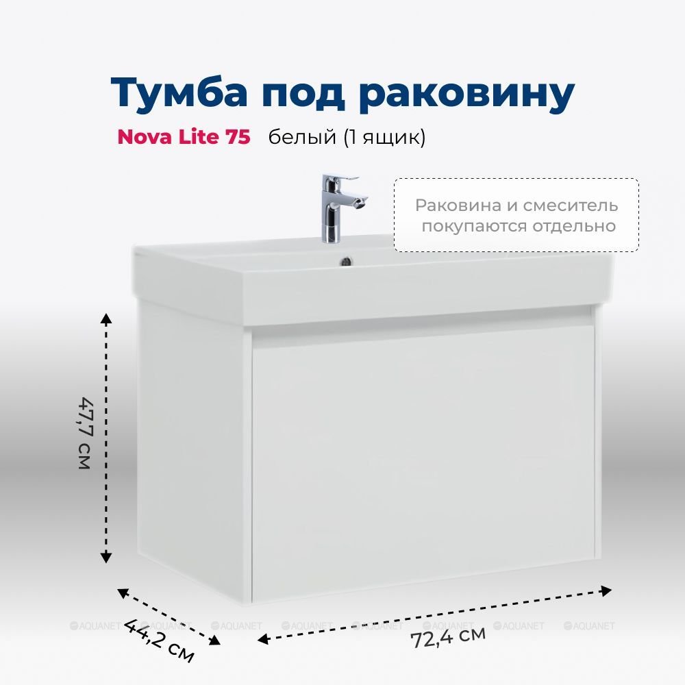 - Тумба: Aquanet Nova Lite 75, цвет белый, 1 выдвижной ящик (242275)