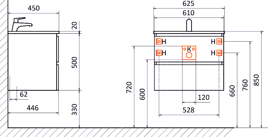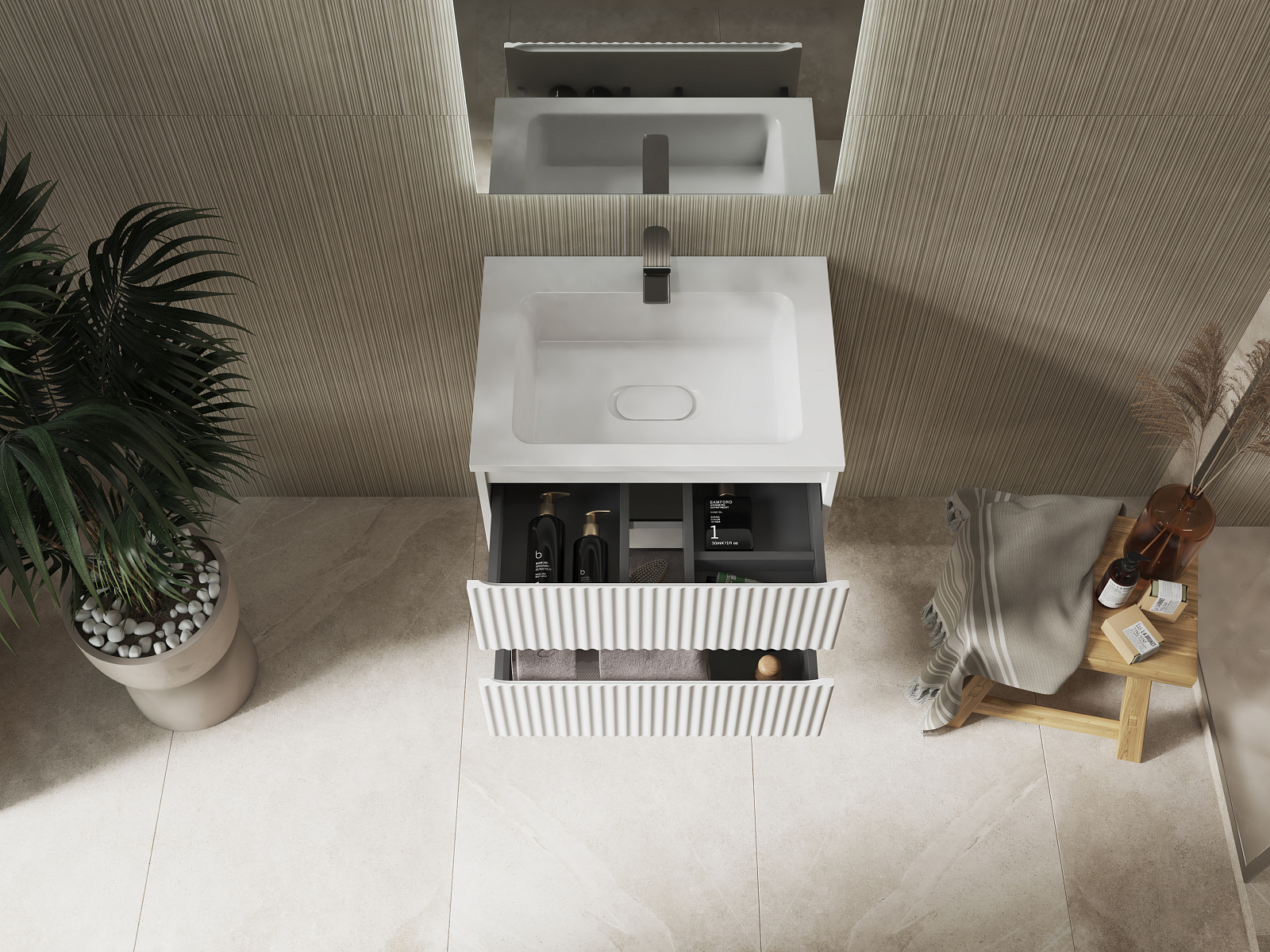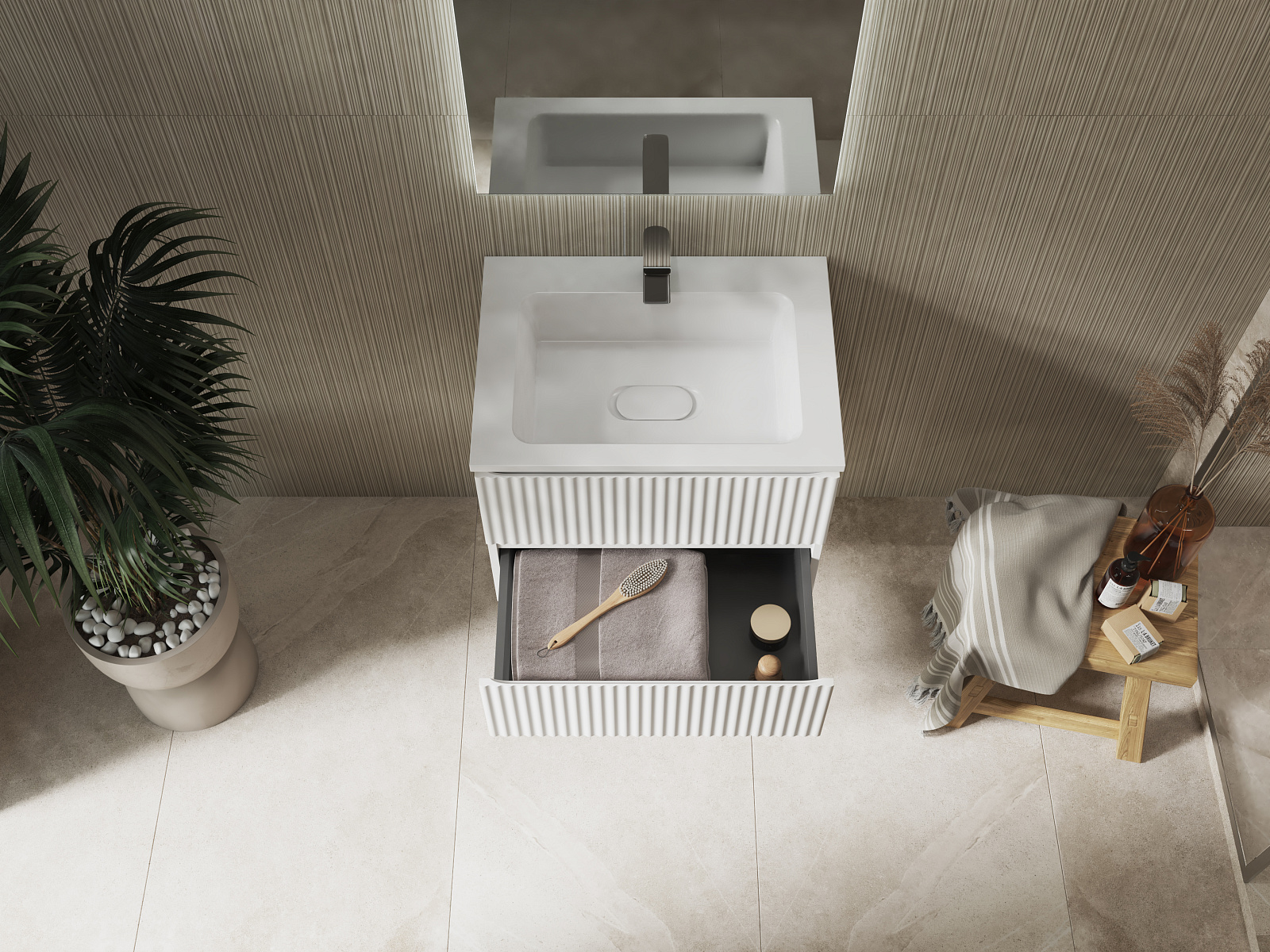 Тумба выполнена из влагостойких материалов с антибактериальным покрытием. Оснащена 2 вместительными ящиками с системой плавного закрывания. Надежная фурнитура выдерживает до 80 000 циклов работы.