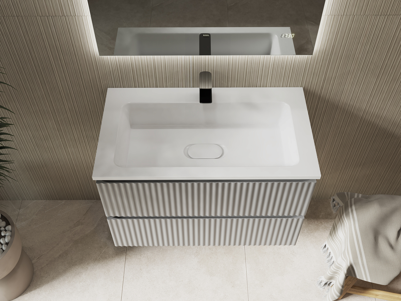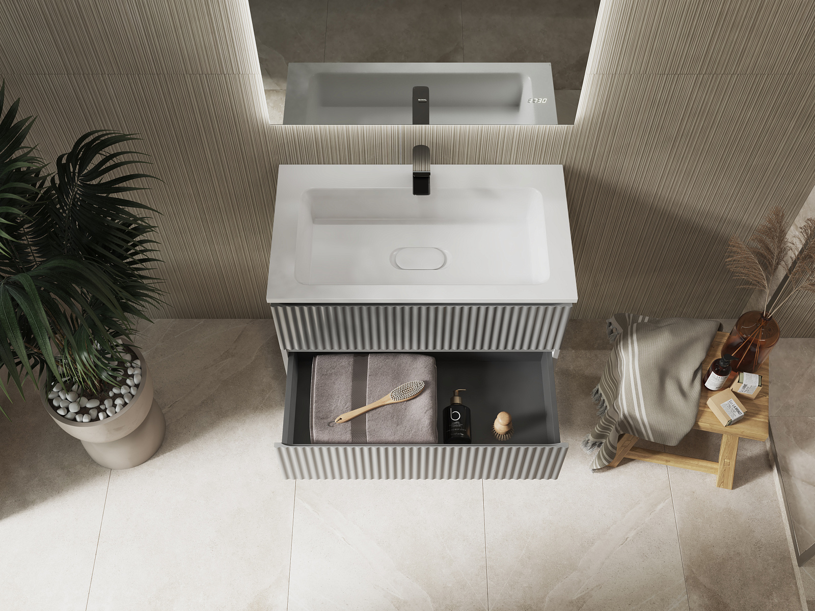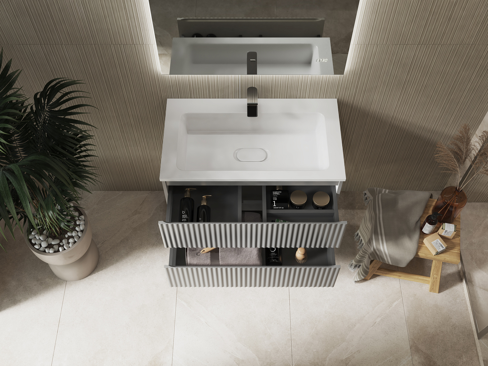 Тумба выполнена из влагостойких материалов с антибактериальным покрытием. Оснащена 2 вместительными ящиками с системой плавного закрывания. Надежная фурнитура выдерживает до 80 000 циклов работы.