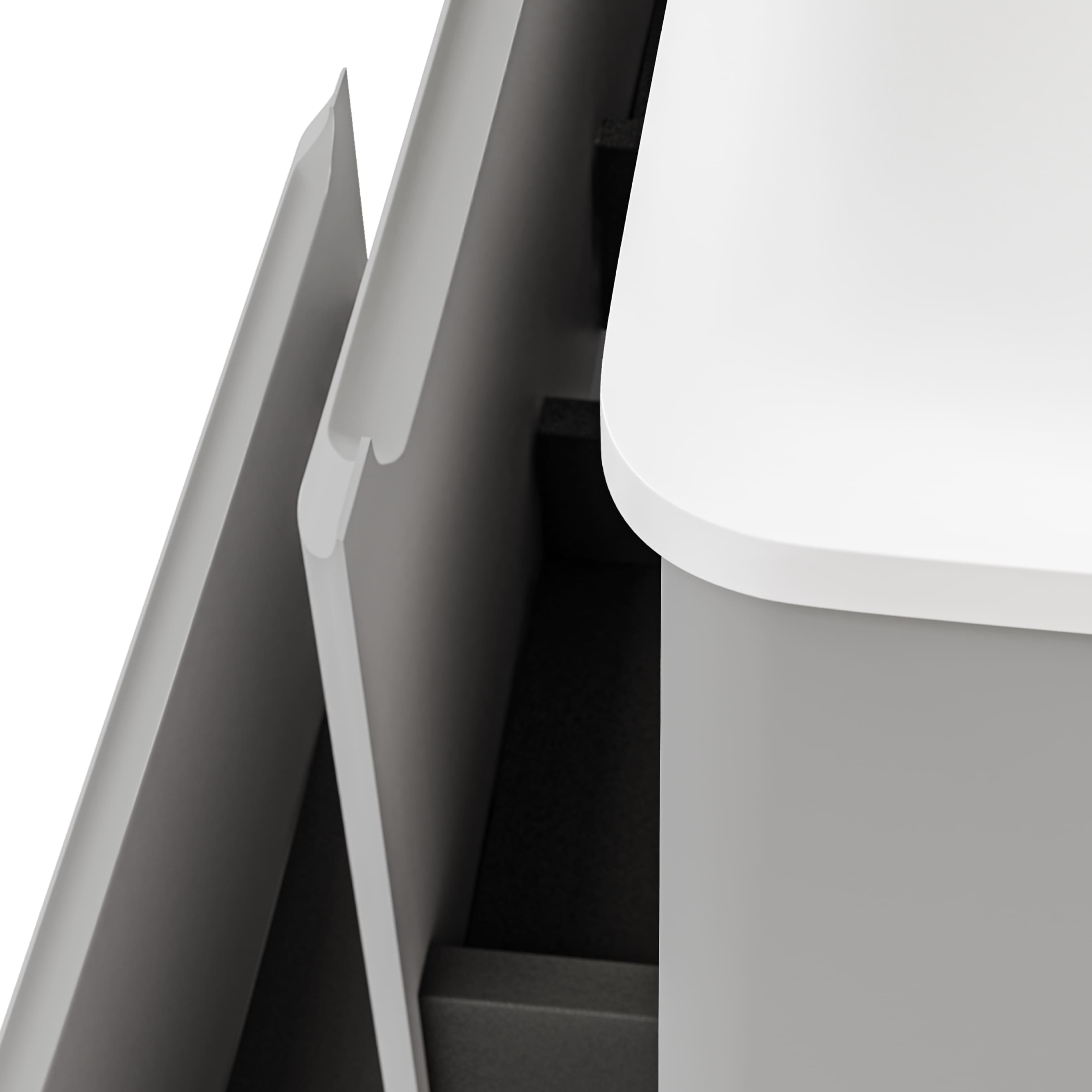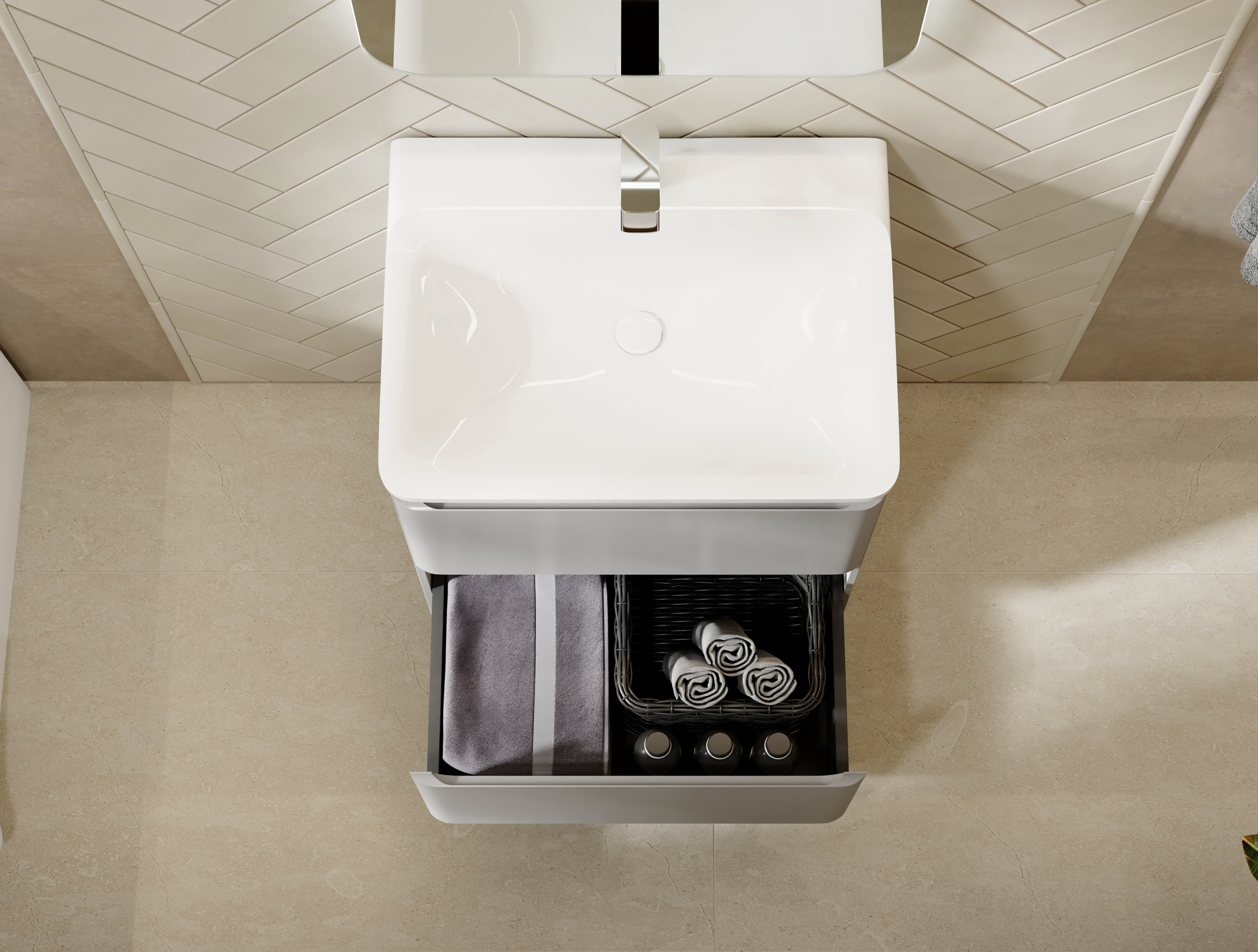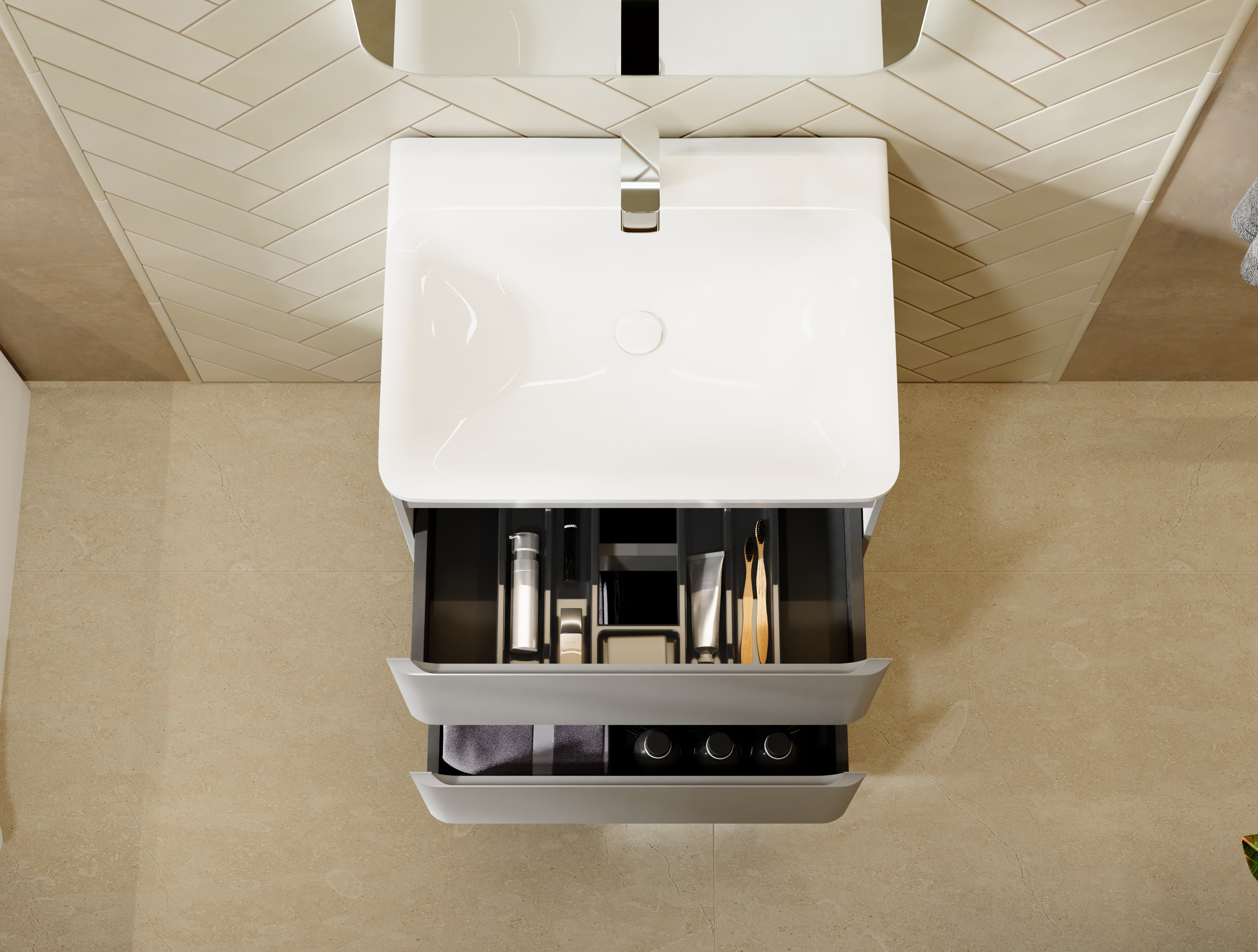 Коллекция Welto разработана в сдержанном современном стиле. Компактный выдвижной ящик освобождает пространство под тумбой для дополнительного использования. Встроенный органайзер помогает удобно разместить все мелкие предметы и поддерживать порядок в ванной комнате. Плавное скругление углов и интегрированные ручки делают комплект мебели максимально безопасным. Полноразмерная вкладная раковина авторского дизайна с пологими бортами проста в уходе. Корпуса и фасады пенала и тумбы изготовлены из МДФ и покрыты глянцевой пленкой ПВХ.