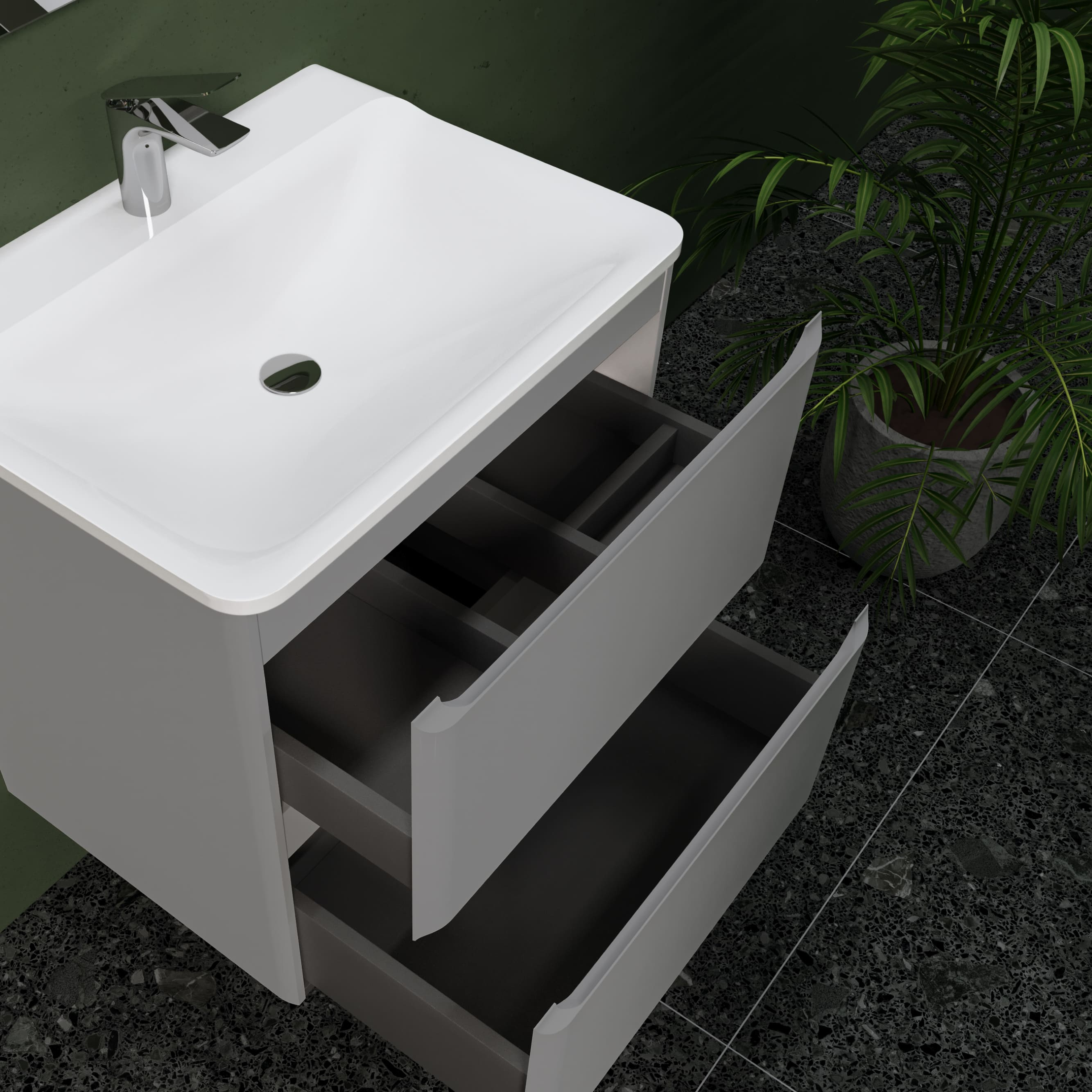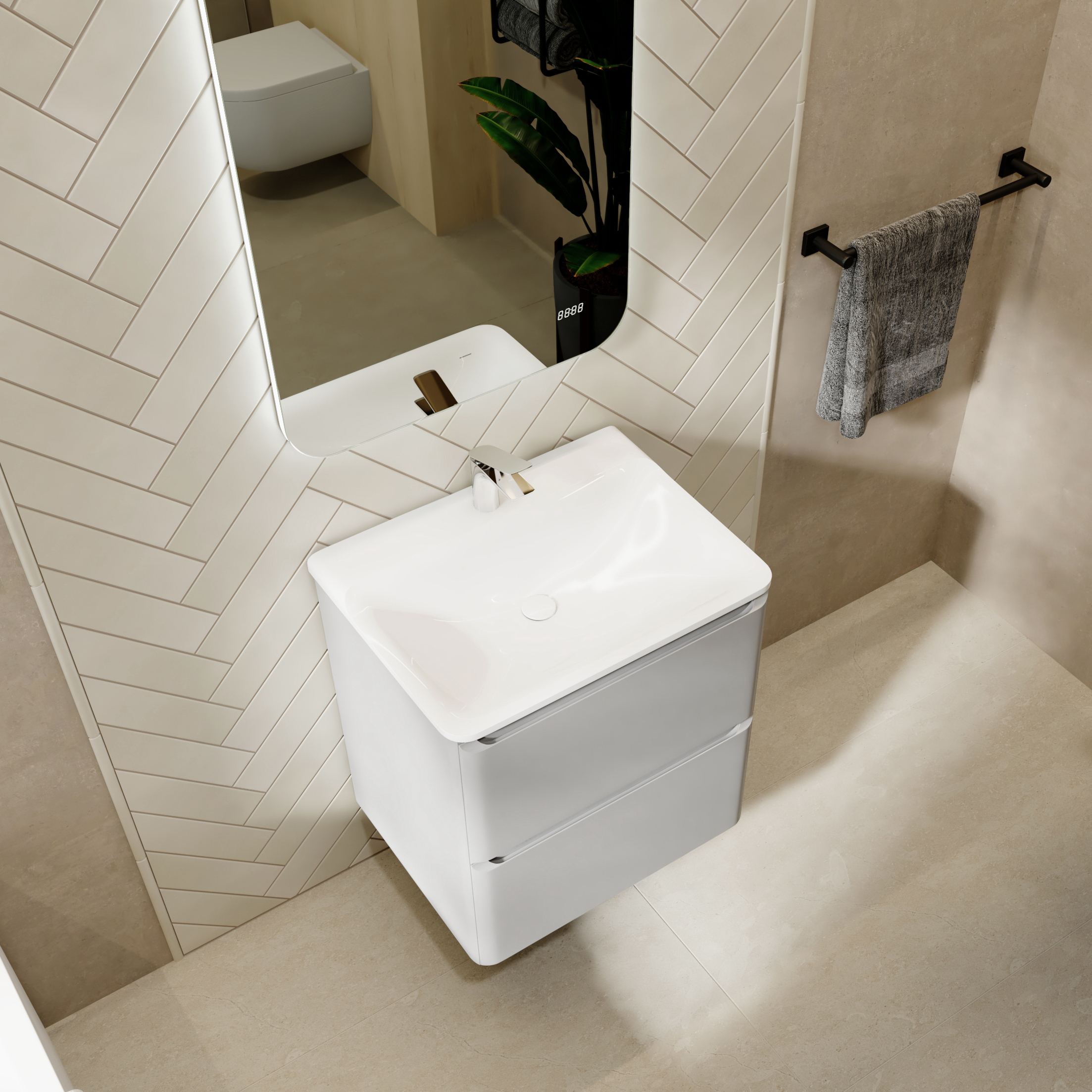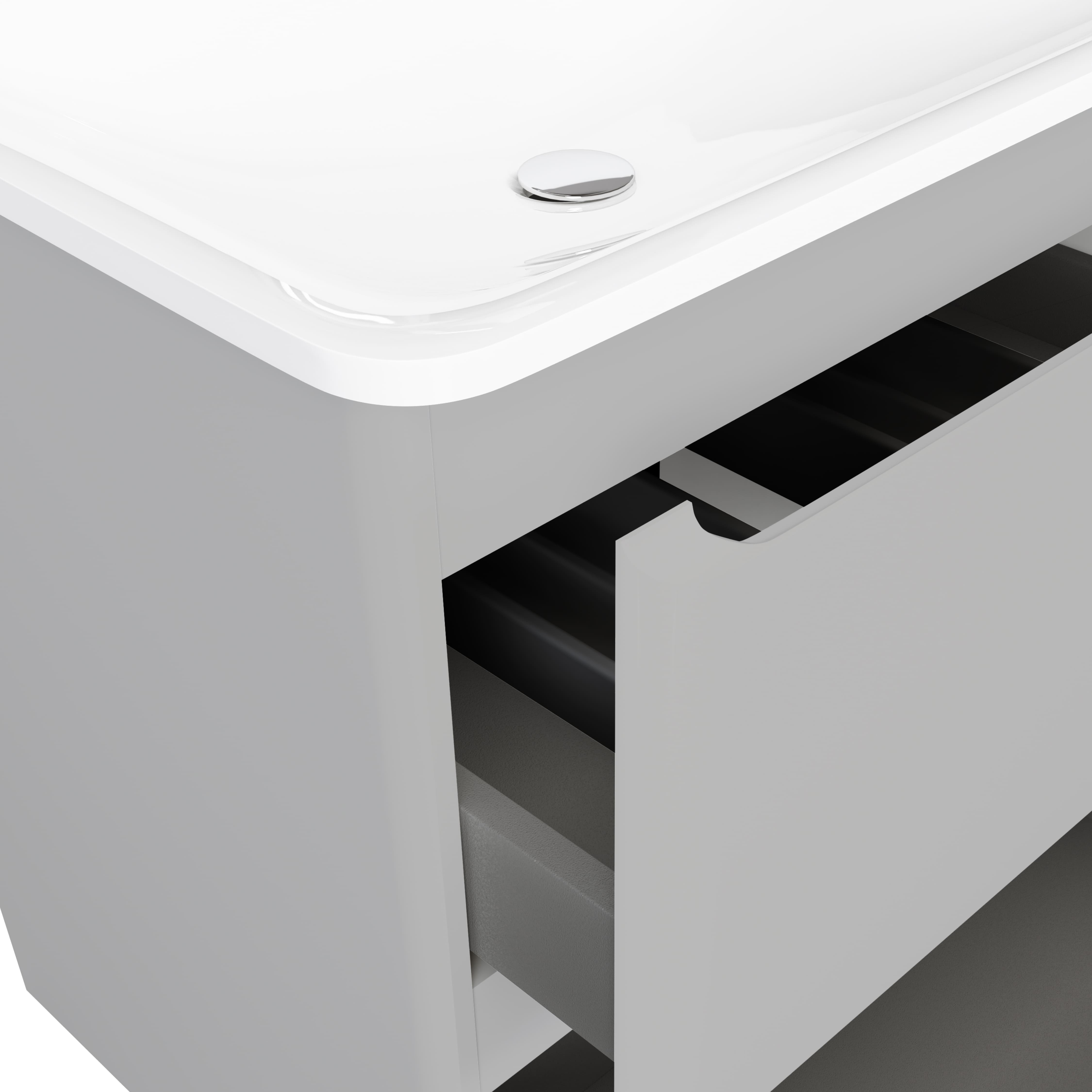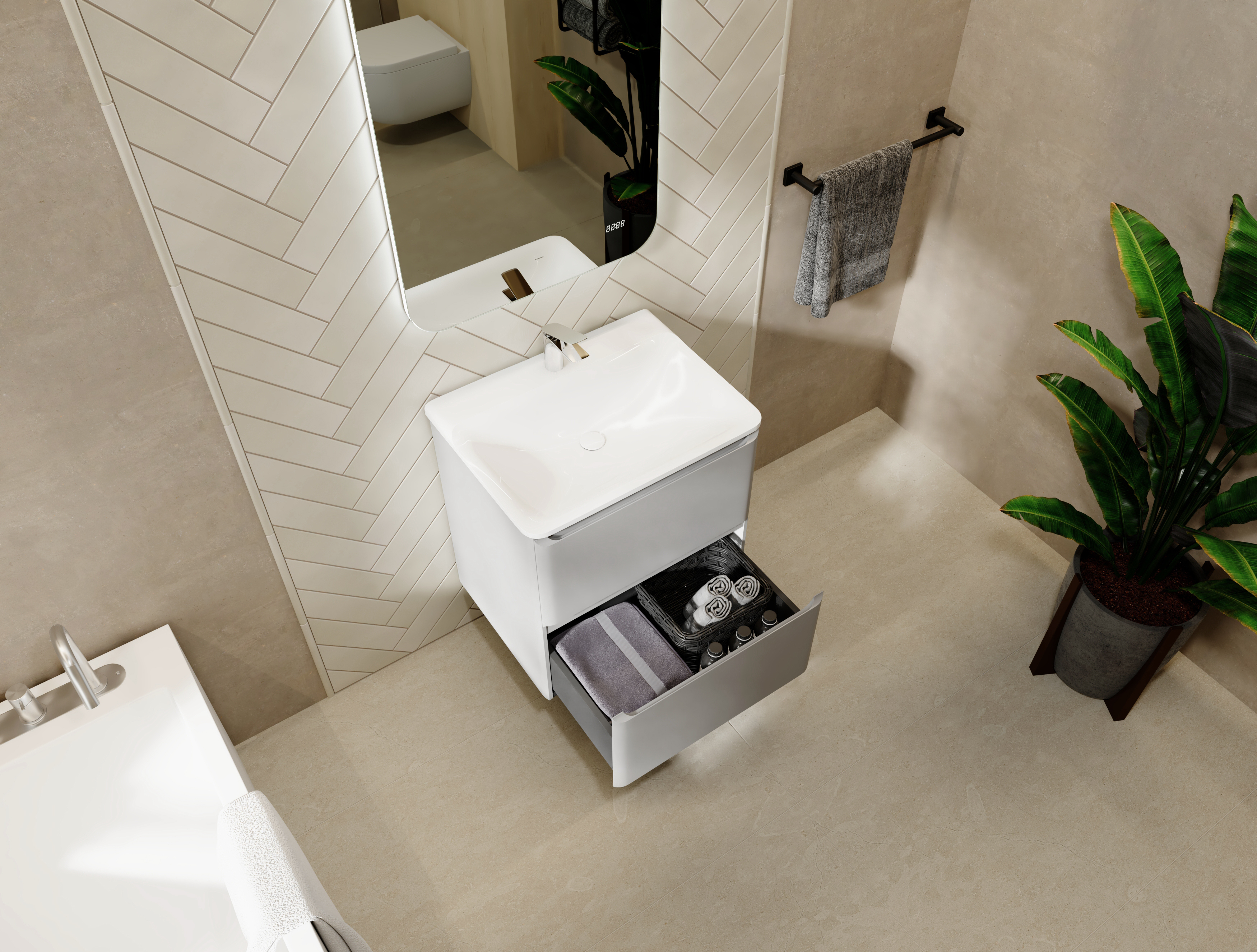 Коллекция Welto разработана в сдержанном современном стиле. Компактный выдвижной ящик освобождает пространство под тумбой для дополнительного использования. Встроенный органайзер помогает удобно разместить все мелкие предметы и поддерживать порядок в ванной комнате. Плавное скругление углов и интегрированные ручки делают комплект мебели максимально безопасным. Полноразмерная вкладная раковина авторского дизайна с пологими бортами проста в уходе. Корпуса и фасады пенала и тумбы изготовлены из МДФ и покрыты глянцевой пленкой ПВХ.