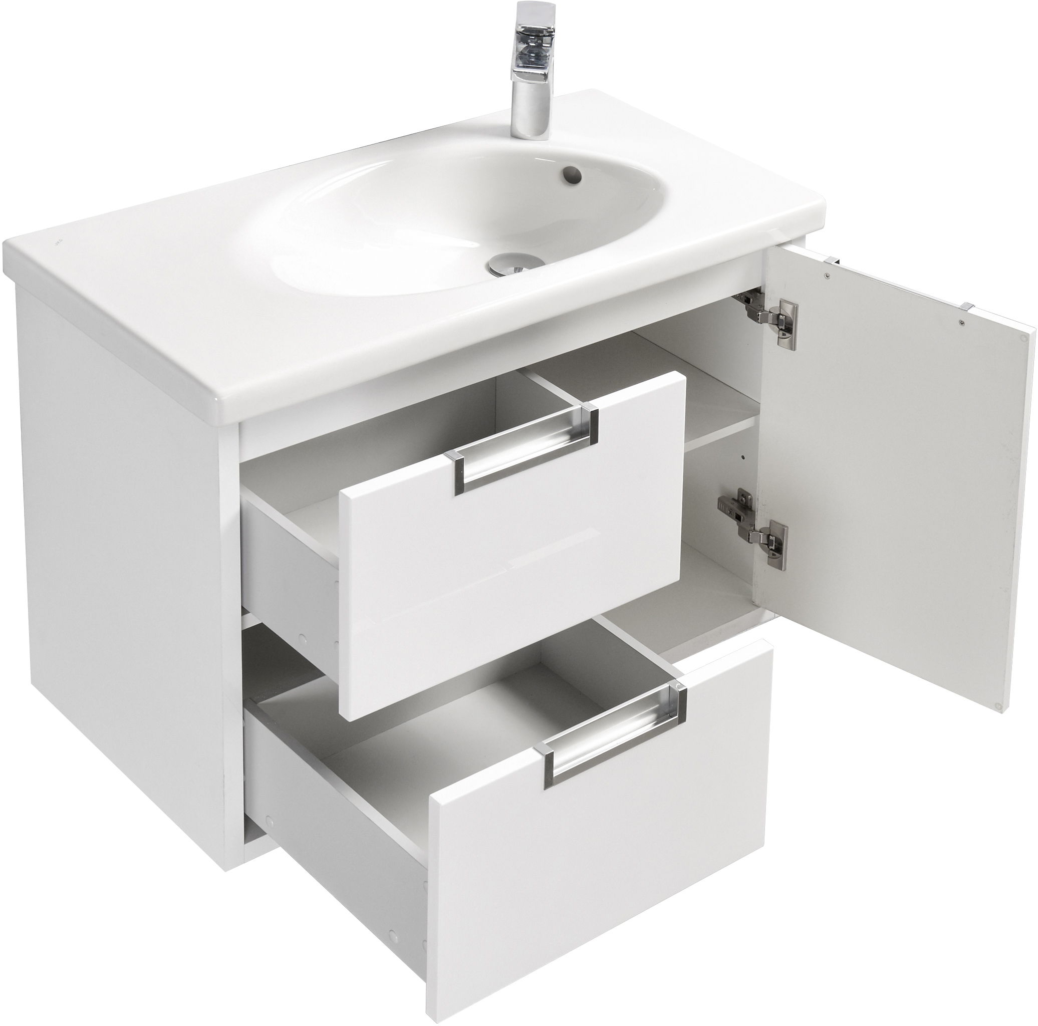 Тумба для раковины Etna в современном стиле от испанского бренда Roca, выполненная из влагостойкой высококачественной ЛДСП с ящиками и распашной дверцей с доводчиками.