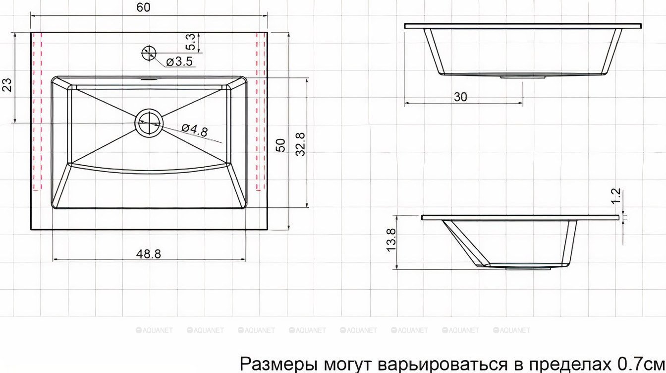 | Диаметр слива раковины, см | 4.8 |