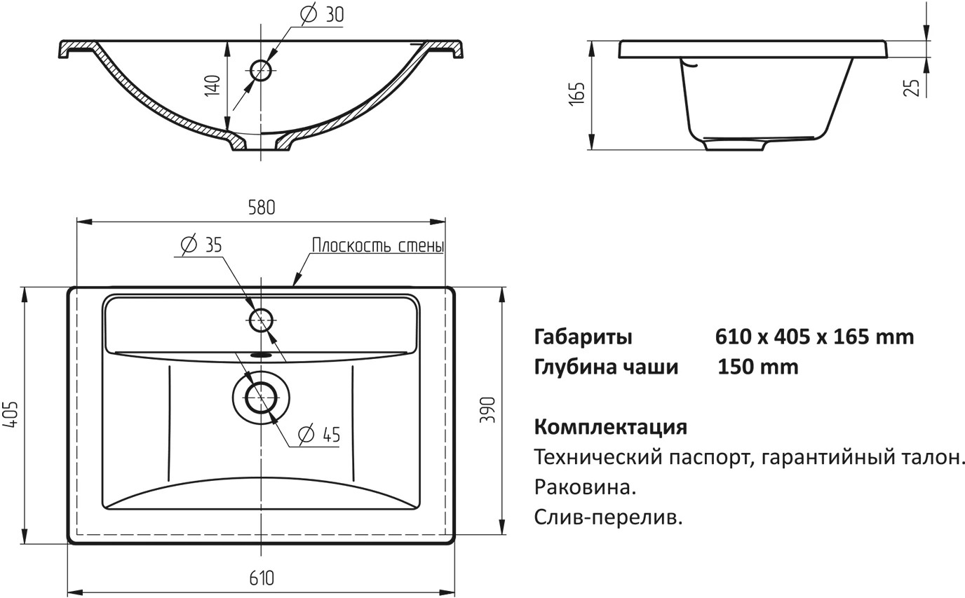 - Умывальник изготовлен из экологически чистого литьевого мрамора, который обеспечивает высокое качество, надежность, практичность и безопасность изделия.