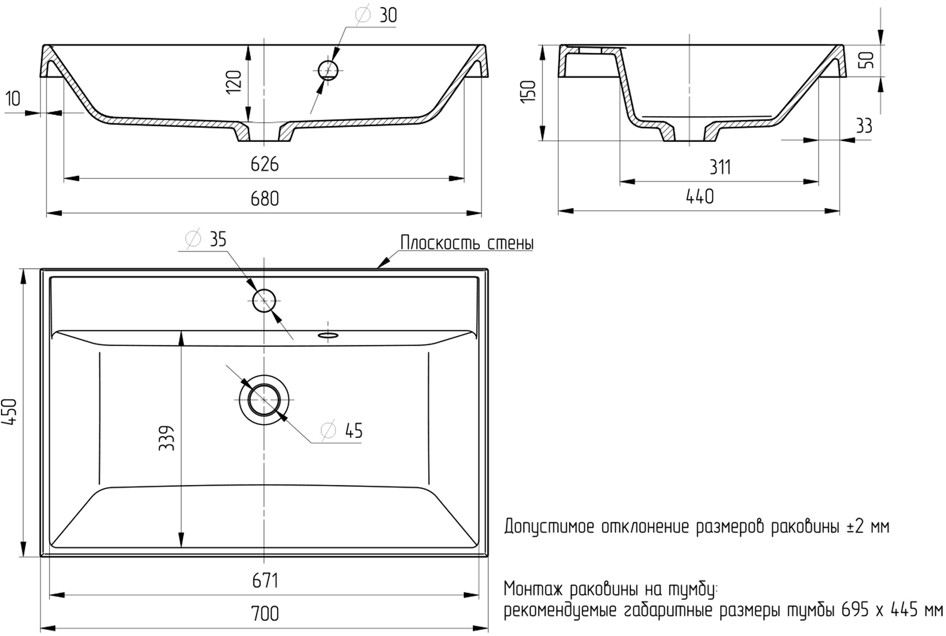 | Тип раковины | полувстраиваемая |