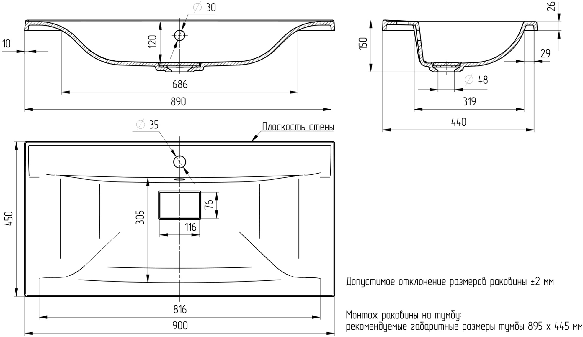 - Раковина устойчива к появлению сколов и трещин, можно выливать кипяток или высыпать лед.