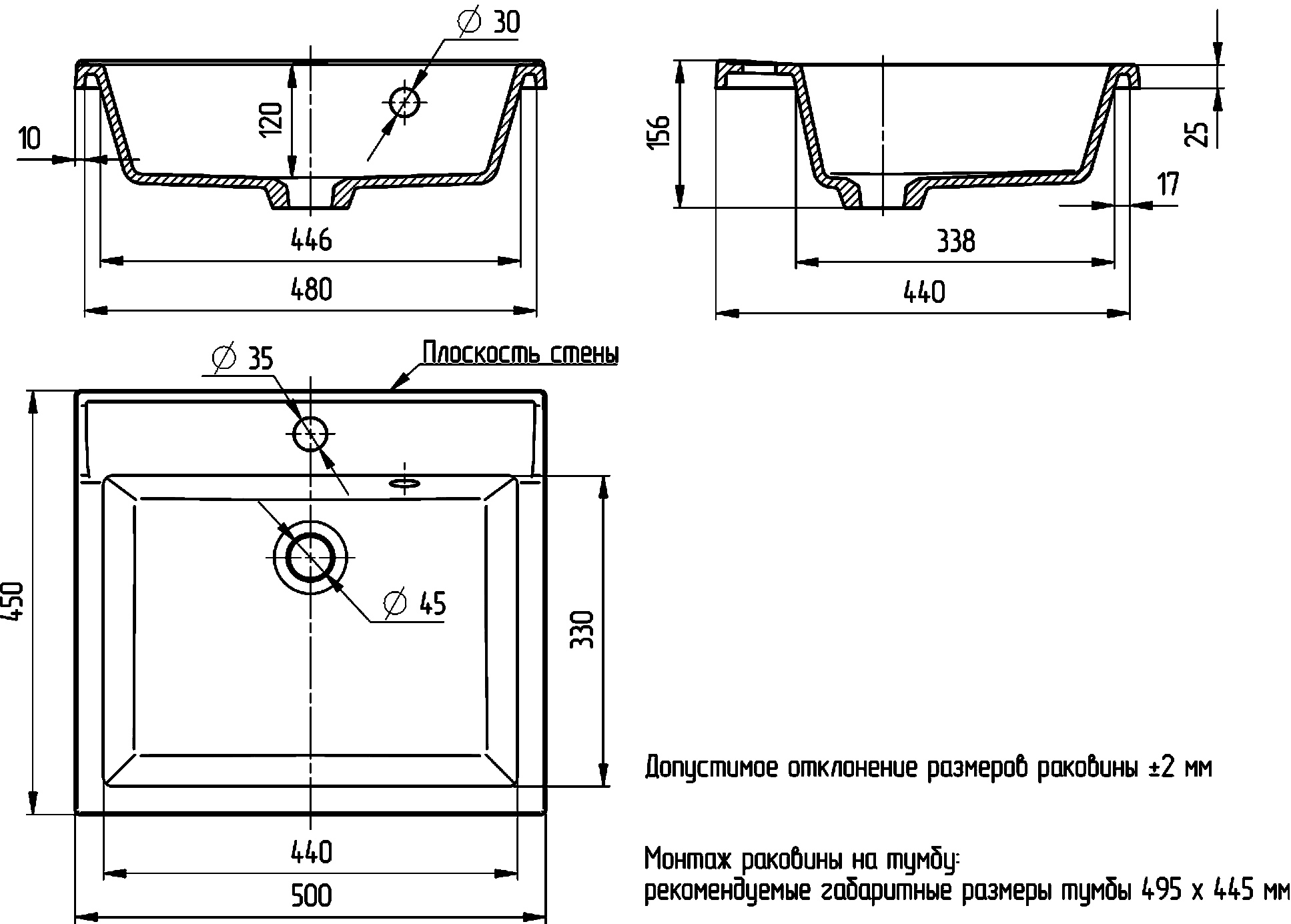 | Тип раковины | полувстраиваемая |