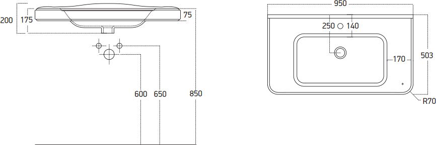 | Отверстия под смеситель | на 1 отверстие |