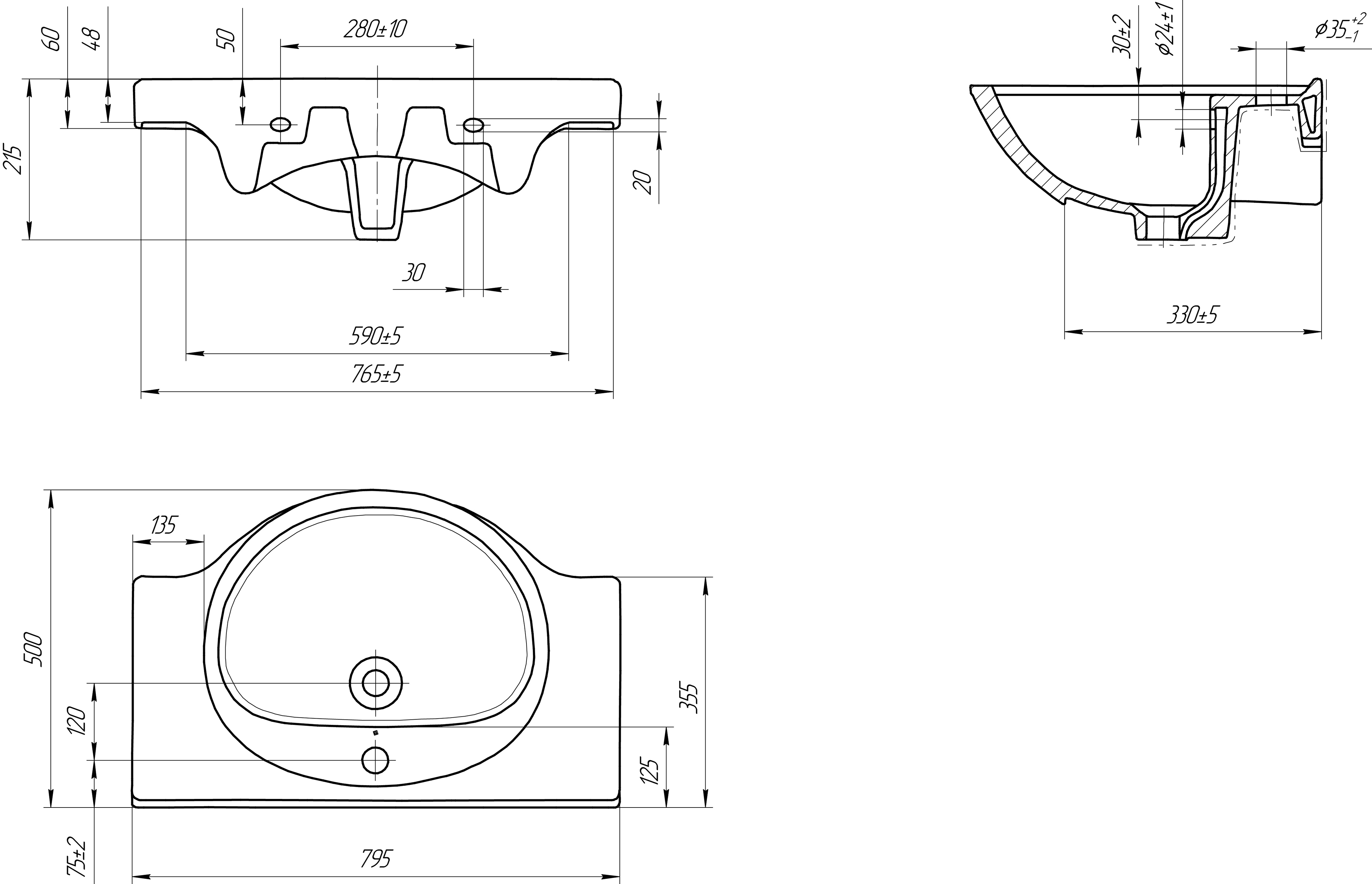 | Намеченных отверстий для смесителя | нет |