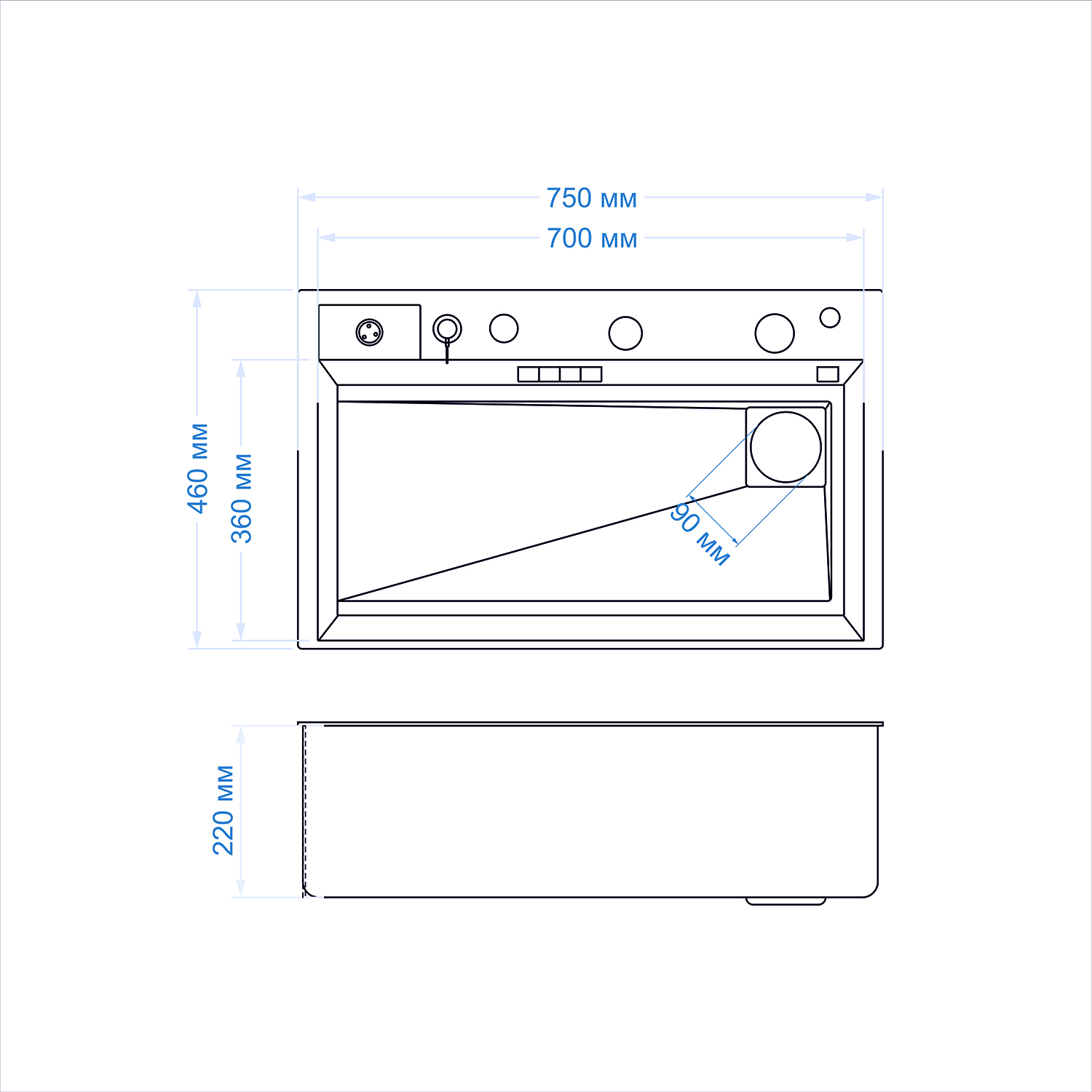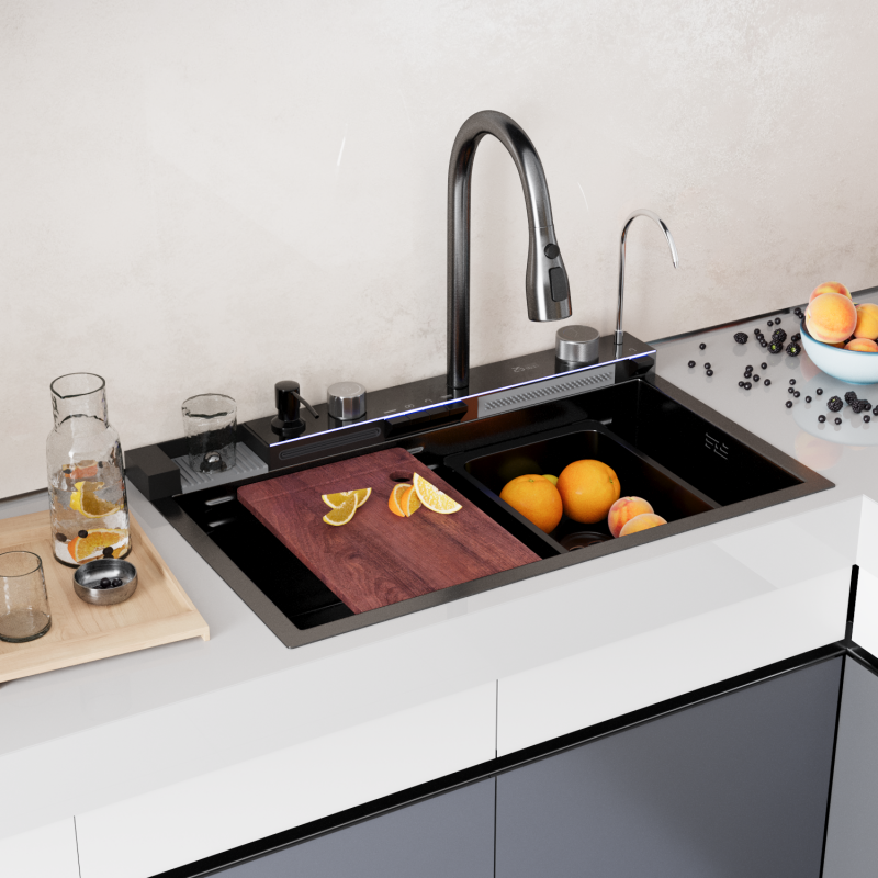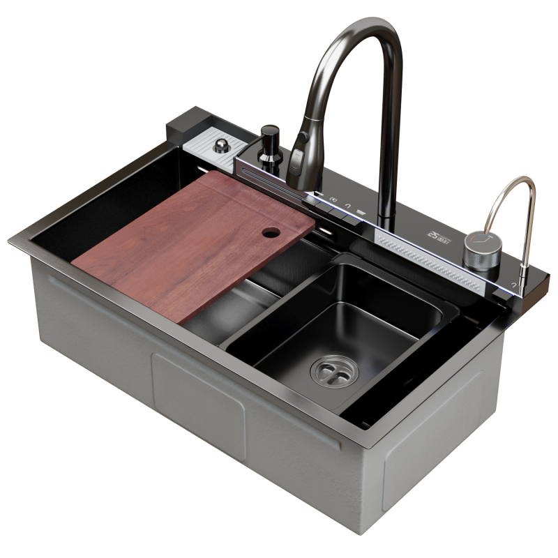| Оснащение | сифон, разделочная доска, коландер, дозатор, смеситель, ополаскиватель стаканов, дисплей, фильтрующая сетка |
