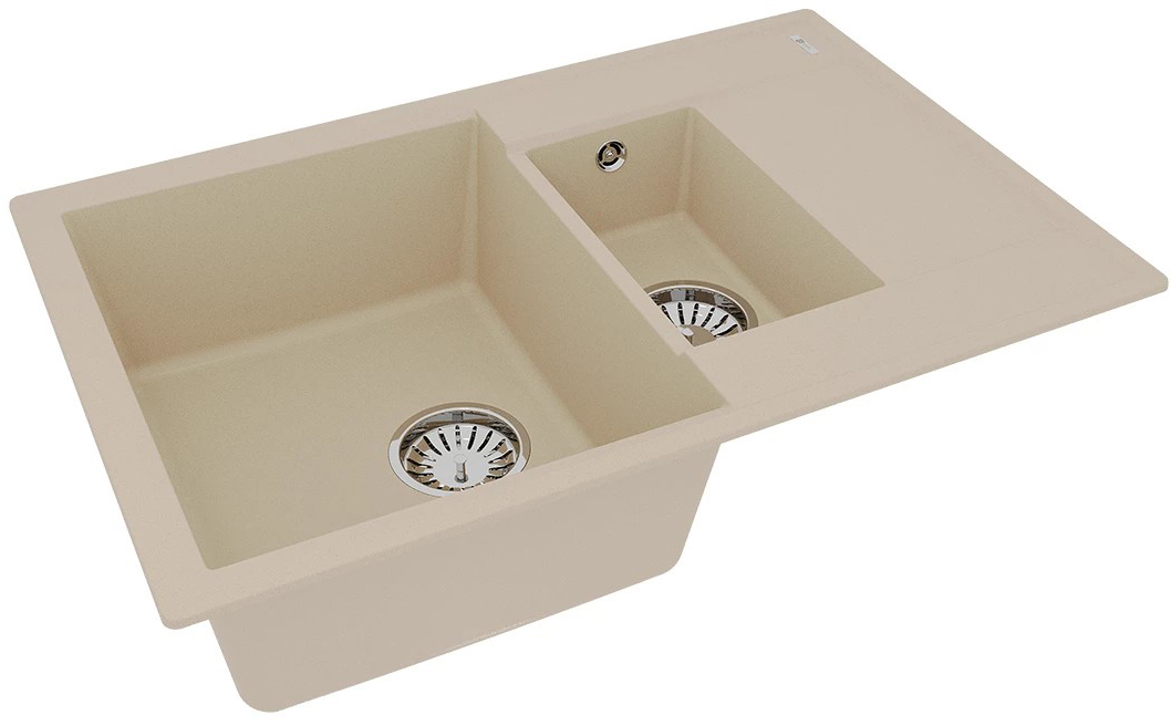 - Комплектация: крепления, сливная арматура с выпуском 3 ½ (D-90мм) с круглым переливом, сифон с возможностью подключения посудомоечной или стиральной машины