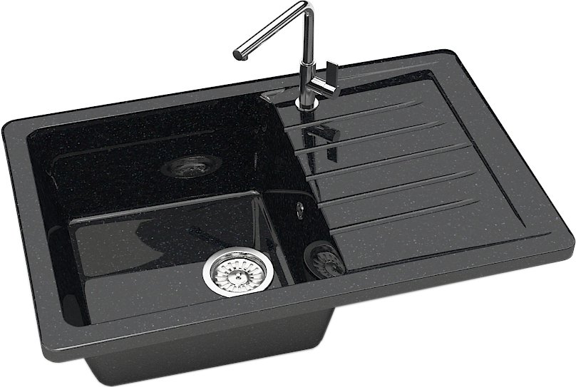 - Глубокая чаша вместительна и безопасна за счет оснащения сливом-переливом и корзинчатым вентилем, задерживающим пищевые отходы