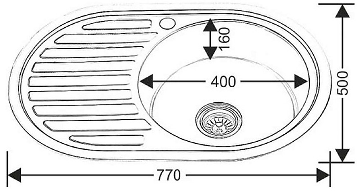 - Чаша глубиной 160 мм препятствует разбрызгиванию воды, а наличие перелива и широкий слив делают мойку безопасной в использовании