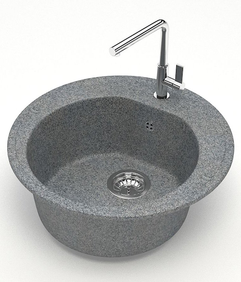 - Круглая чаша из литьевого мрамора покрыта гелькоутом, позволяющим надолго сохранить сверкающую белизну