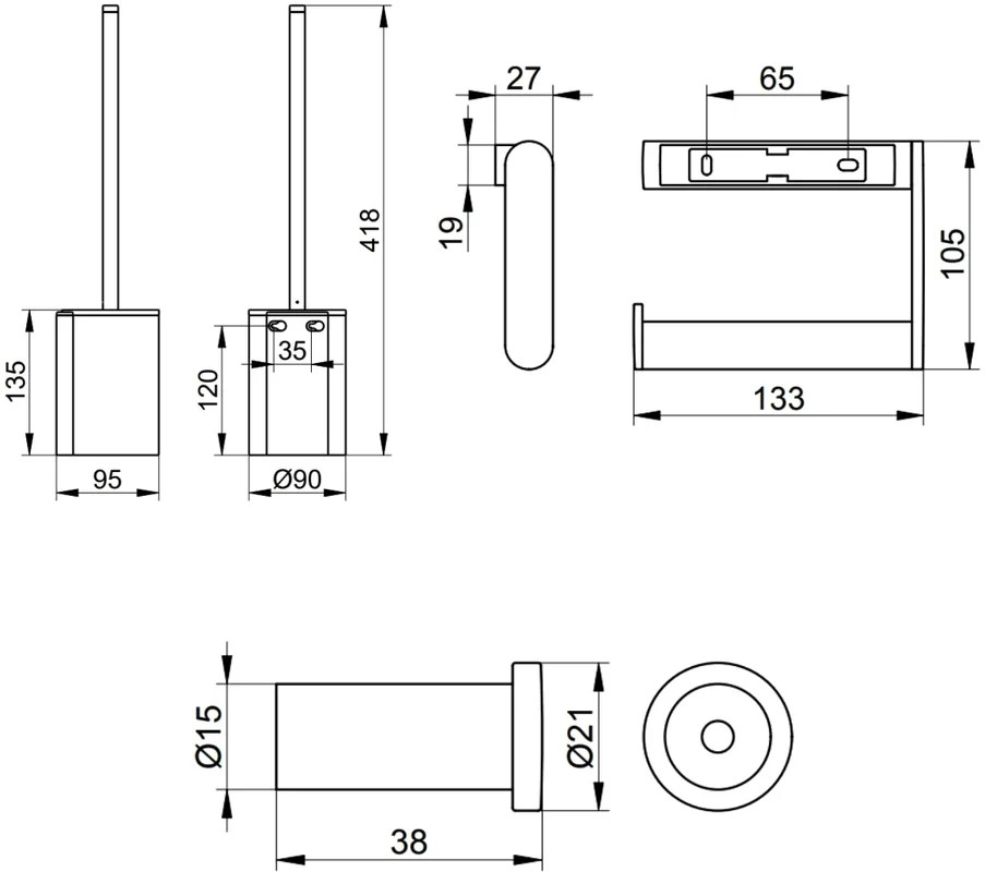 - A9119XG IOM Туалетная щетка с держателем, для настенного монтажа, матовое стекло, с крепежом