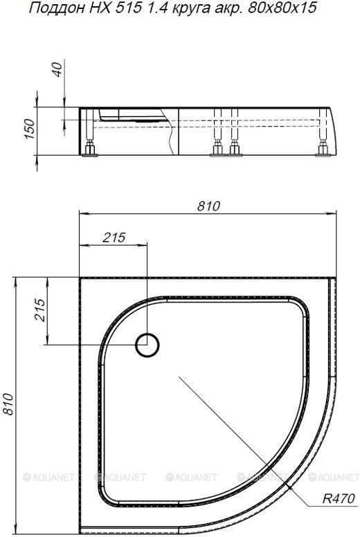 Средний душевой поддон Aquanet НХ515 800х800 мм. Угловой поддон с легким рифлением против скольжения.