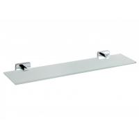 Полочка изготовлена из закаленного матового стекла. Материал держателя - металл с хромоникелевым покрытием.