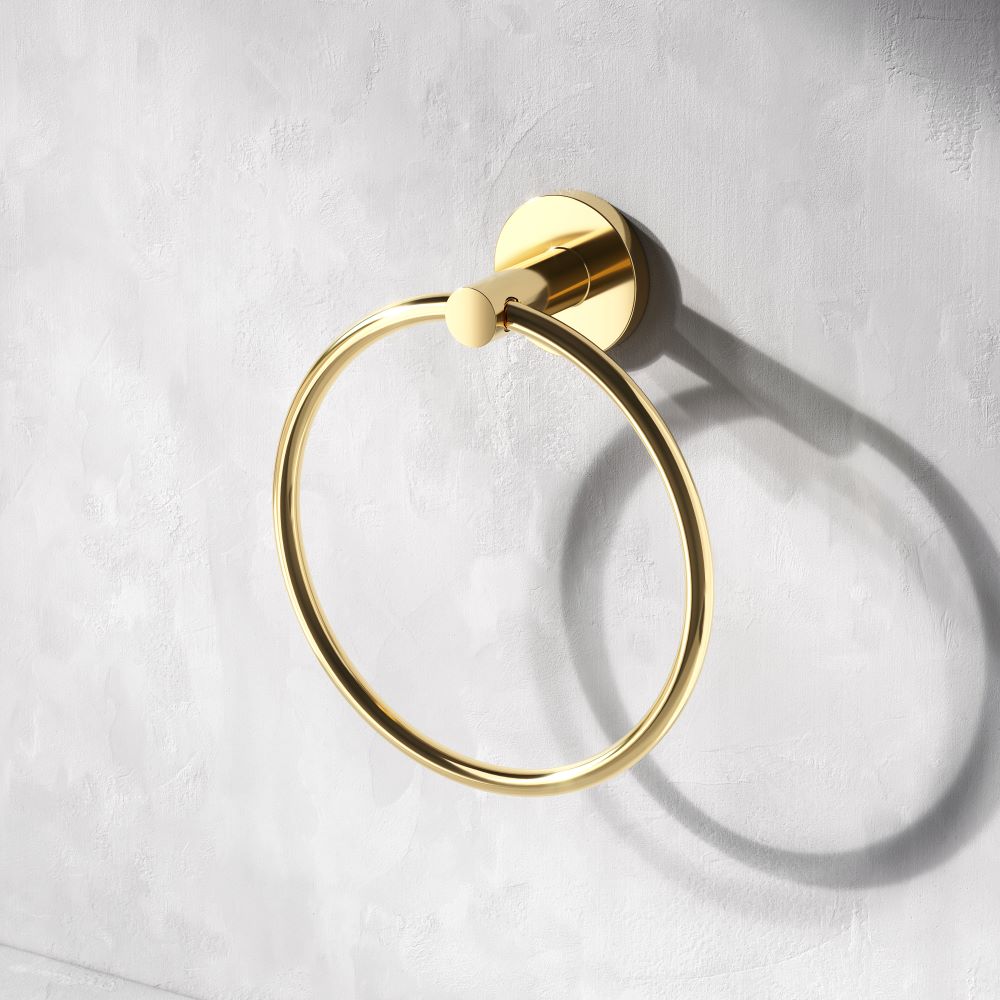 - Кольцо для полотенец X-Joy – незаменимый аксессуар для ванной который поражает своей эргономичностью. Продукт выполнен из сплава металлов высочайшего качества с блестящим золотым покрытием, устойчивым к механическим повреждениям.