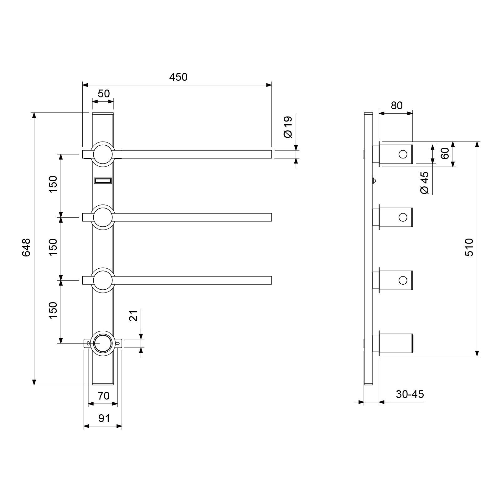 Встраиваемый электрический полотенцесушитель Timo Saona 030 предназначен для сушки текстильных изделий. Основные преимущества встроенного полотенцесушителя: элегантный внешний вид, все коммуникации и крепления спрятаны в стену, с внешней стороны видны только нагревательные элементы и блок контроля температуры. Сенсорный дисплей прост и удобен в использовании, нажмите и удерживайте кнопку для включения/выключения в течении 3 секунд, на дисплее автоматически отобразится температура и таймер. Диапозон регулировки температуры от 40 до 70°С, при каждом нажатии кнопки температура повышается на 5°С. Диапозон регулировки таймера: от 1 до 24 часов. Каждое нажатие кнопки увеличивает время работы на 1 час. Чтобы обеспечить длительную и безопасную работу электрического полотенцесушителя, внимательно изучите инструкцию и придерживайтесь рекомендаций по установке и эксплуатации. Сложностей монтажа не возникает при установке полотенцесушителя опытным электриком.