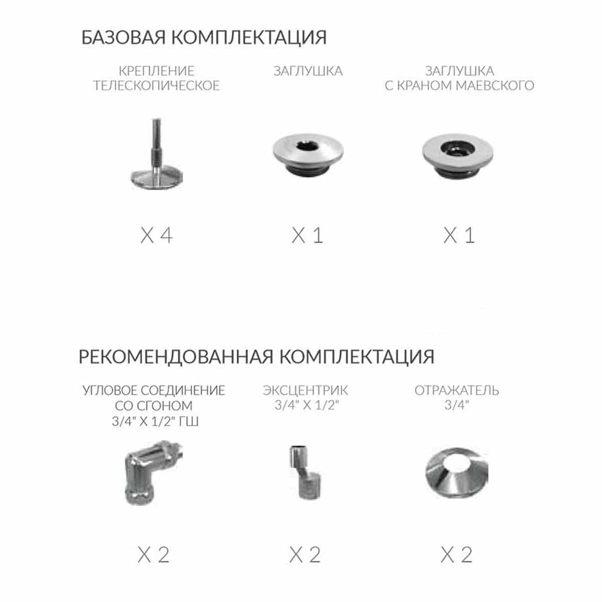 | Оснащение | кран Маевского, декоративные заглушки, крепления |