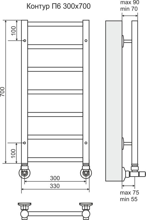 Водяной полотенцесушитель Terminus Контур П6 300x700 4660059582429 с нижним подключением. Для производства полотенцесушителя используется только высококачественная нержавеющая сталь марки AISI 304L с высоким содержанием легирующих элементов, Ni и Cr, это позволяет изделиям сохранять стойкость к агрессивным коррозийным средам, что существенно продлевает срок их эксплуатации. Толщина стенки используемой трубы не менее 2 мм, это обеспечивает 10-ти кратный запас прочности, труба устойчива к резким перепадам давления в системе водоснабжения!