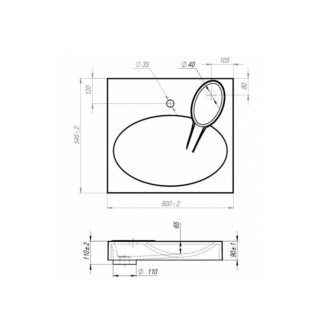| Диаметр слива раковины, см | 4 |