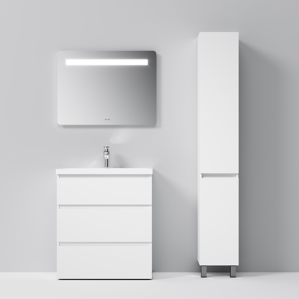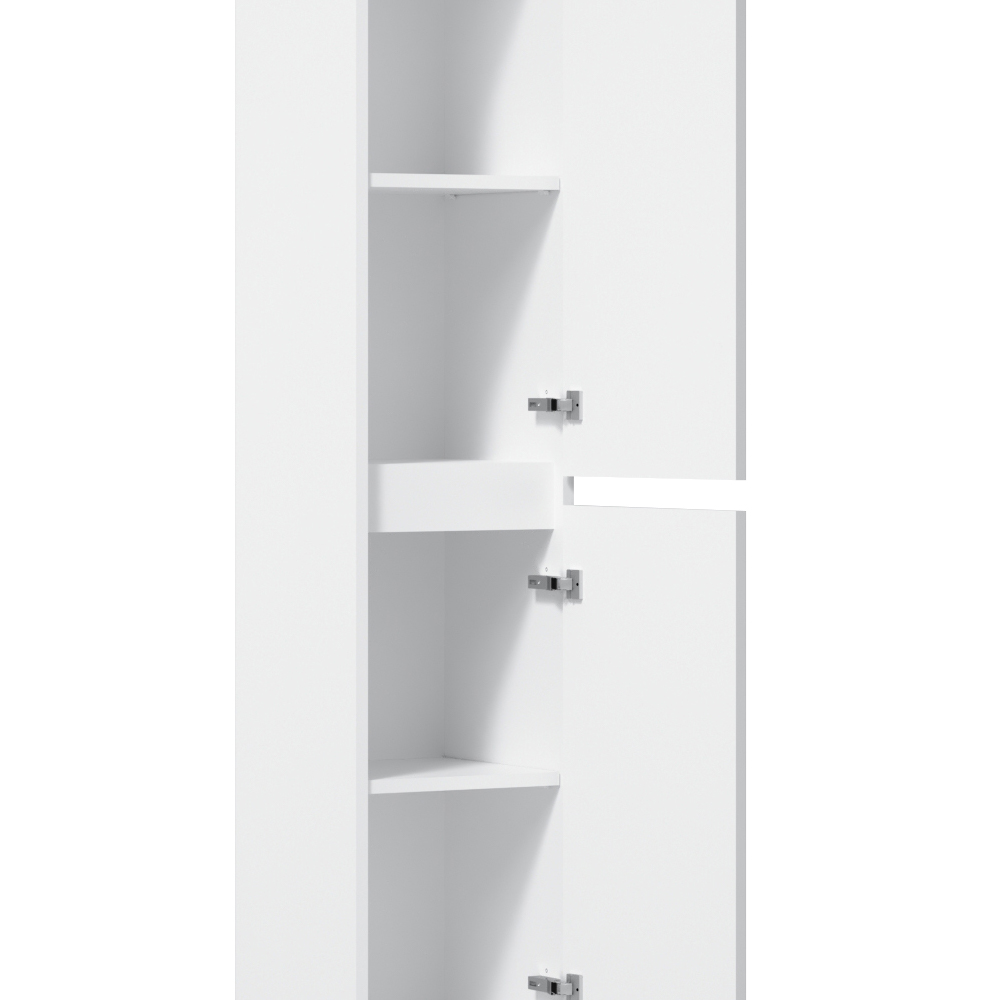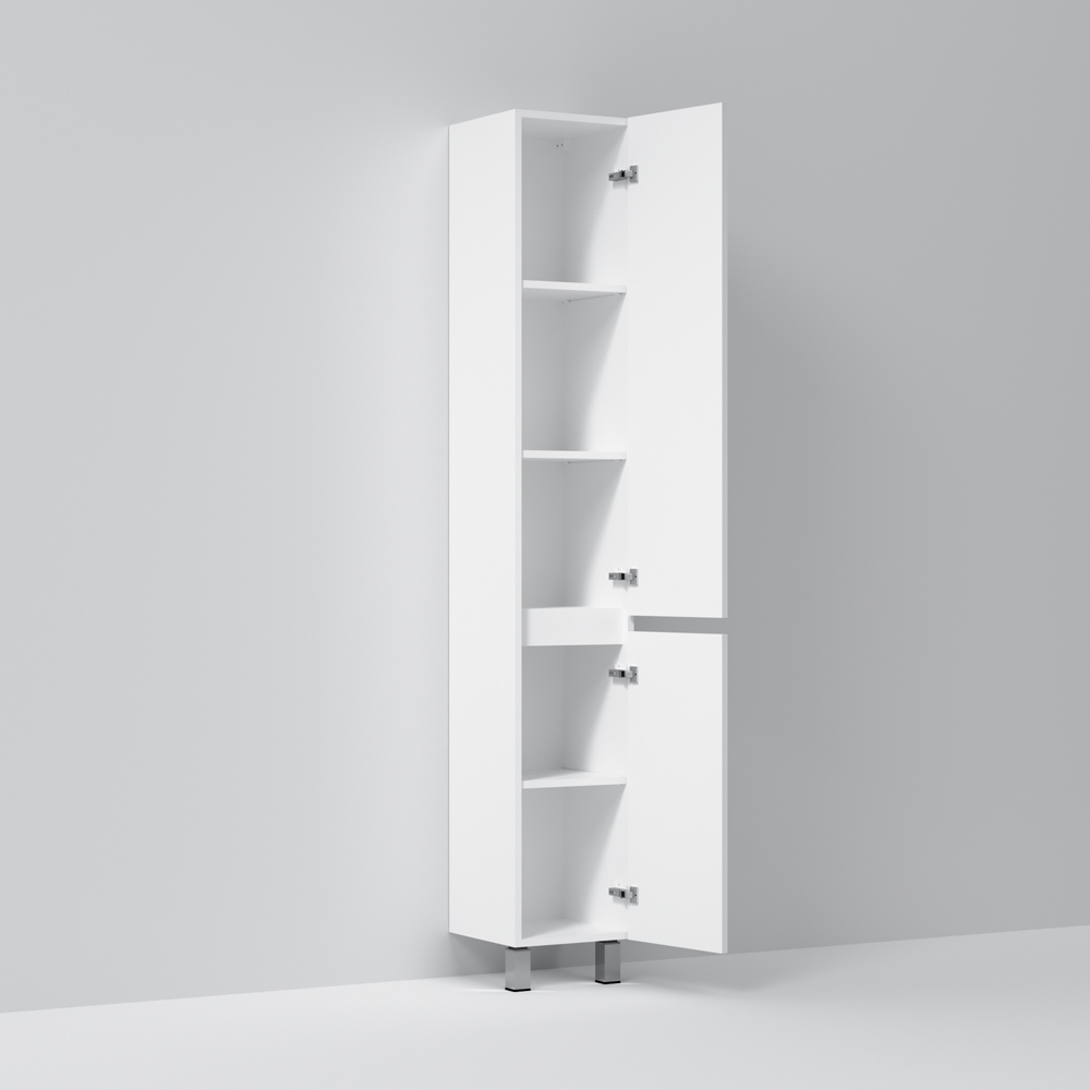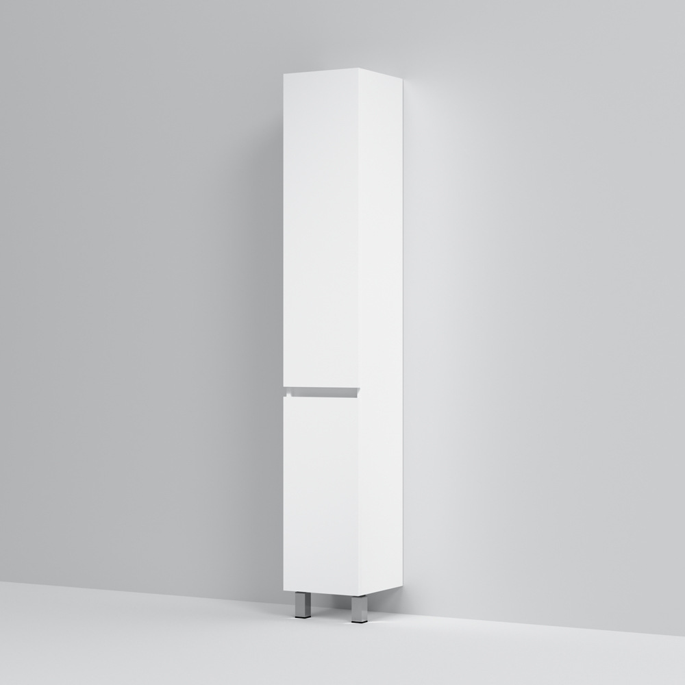 Шкаф пенал AM.PM Gem S 30 R белый, с глянцевой поверхностью, с двумя распашными дверцами (петли справа), с двумя хромированными ножками, для длительного срока службы в ванных комнатах с повышенной влажностью.
