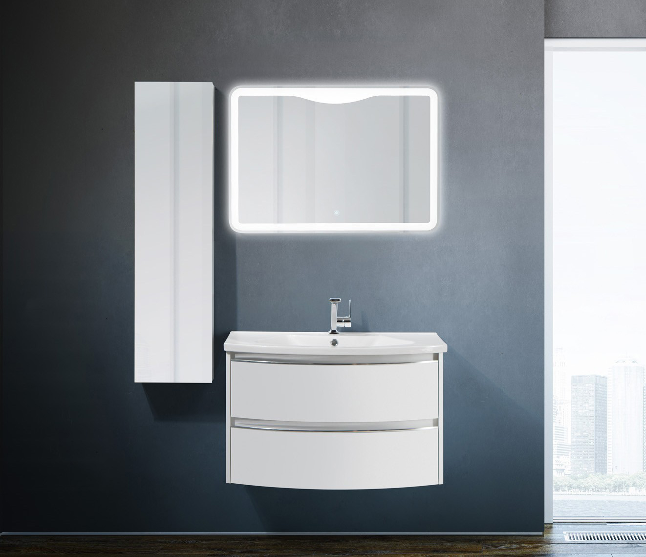 Зеркальный шкаф с распашной дверью, с двусторонним стеклянным полотном, со стеклянными полками.