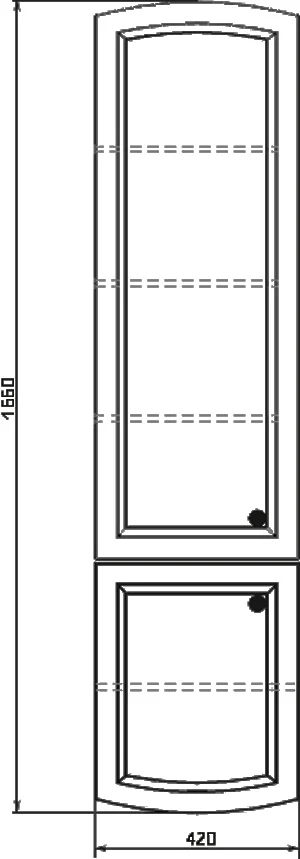 - За верхней створкой три горизонтальные полки, за нижней одна