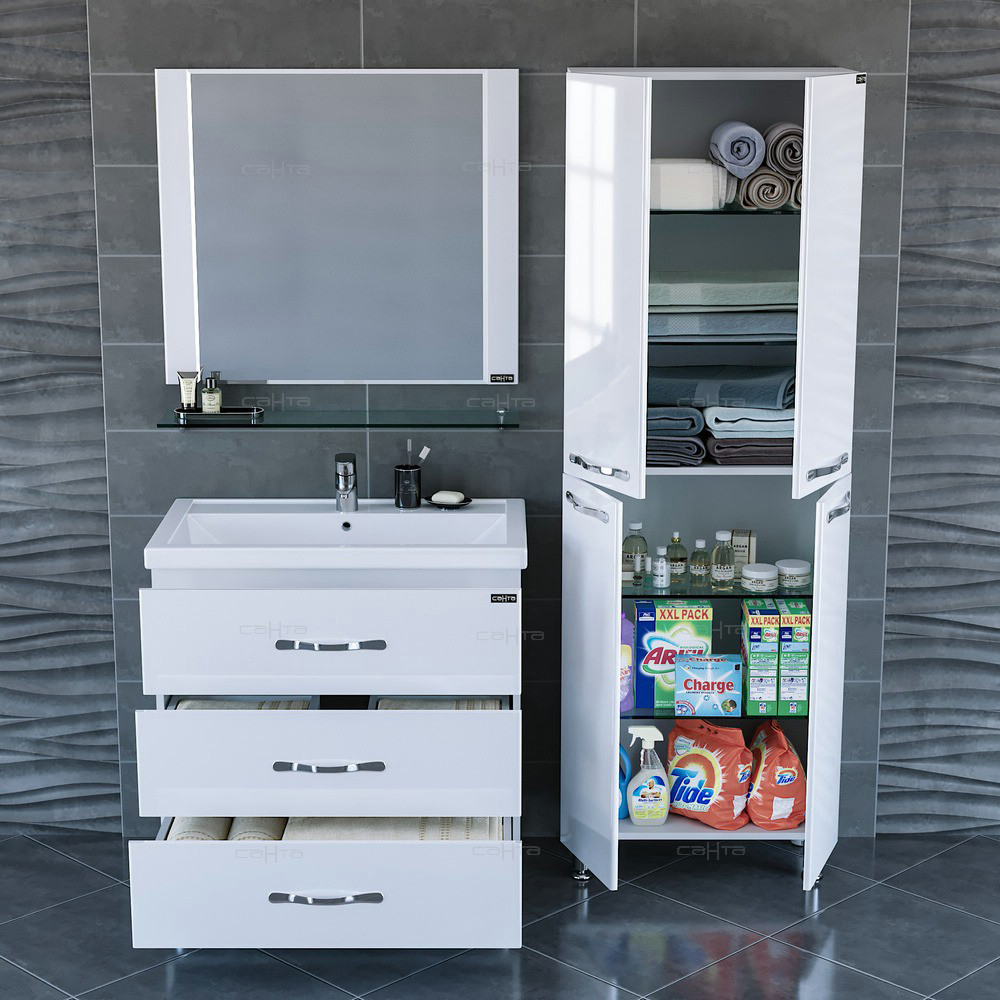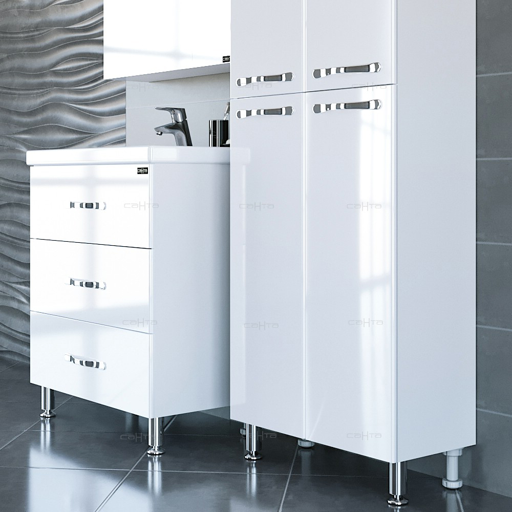 - Шкаф-колонна укомплектована подвесами и ножками, что даёт возможность принять решение по типу монтажа в момент установки