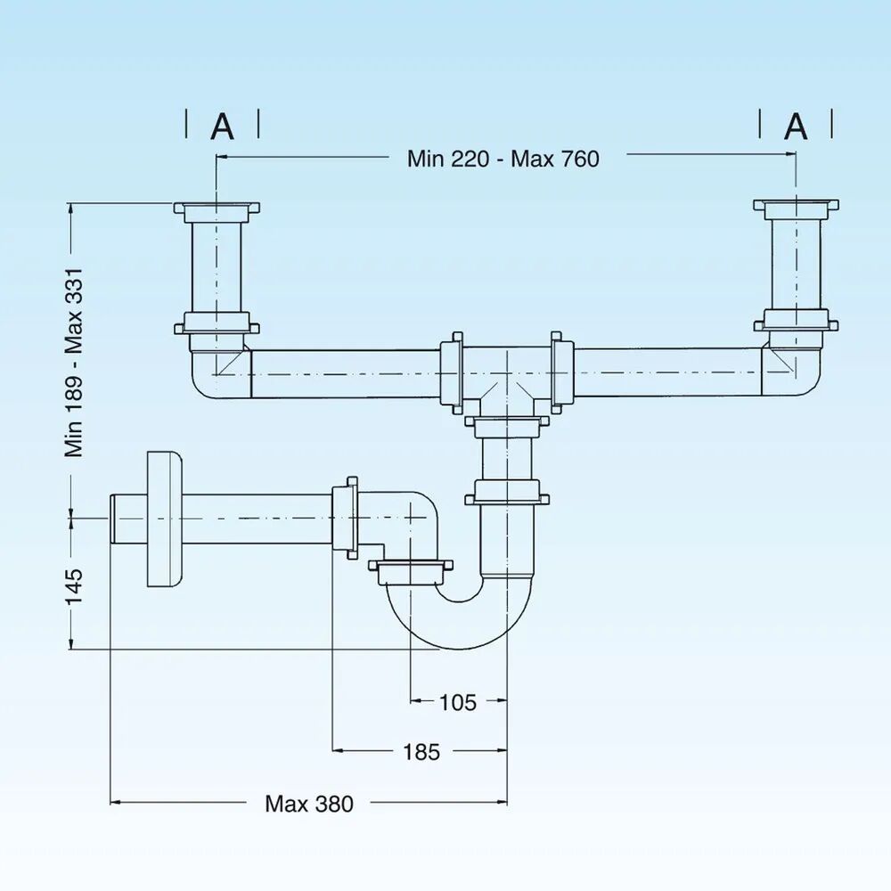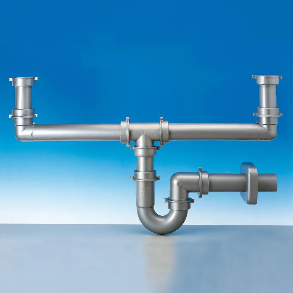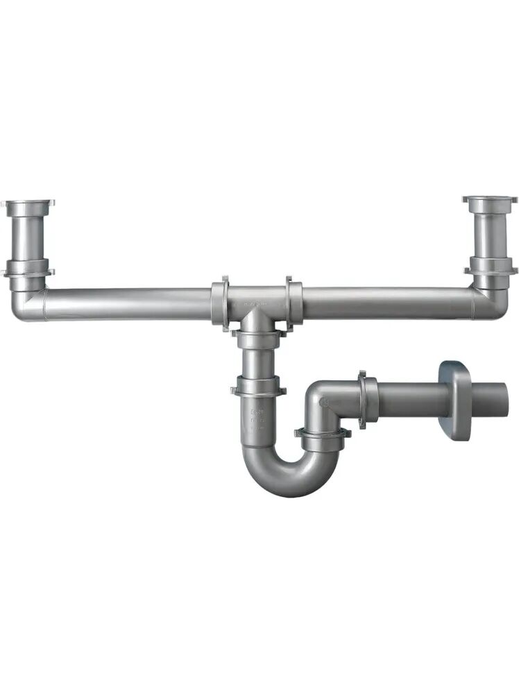 - Сифон предназначен для подключения кухонных моек, имеющих две раковины, к канализационной системе, для чего на данном сифоне присутствует двойной выпуск