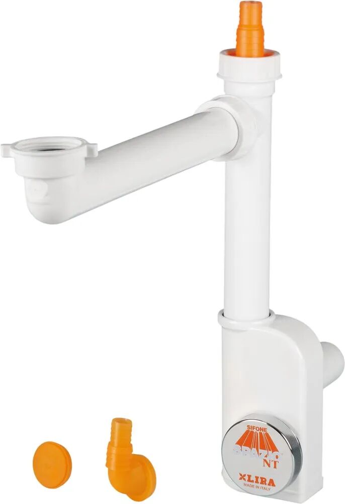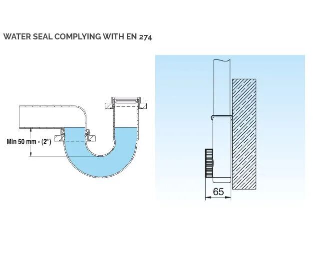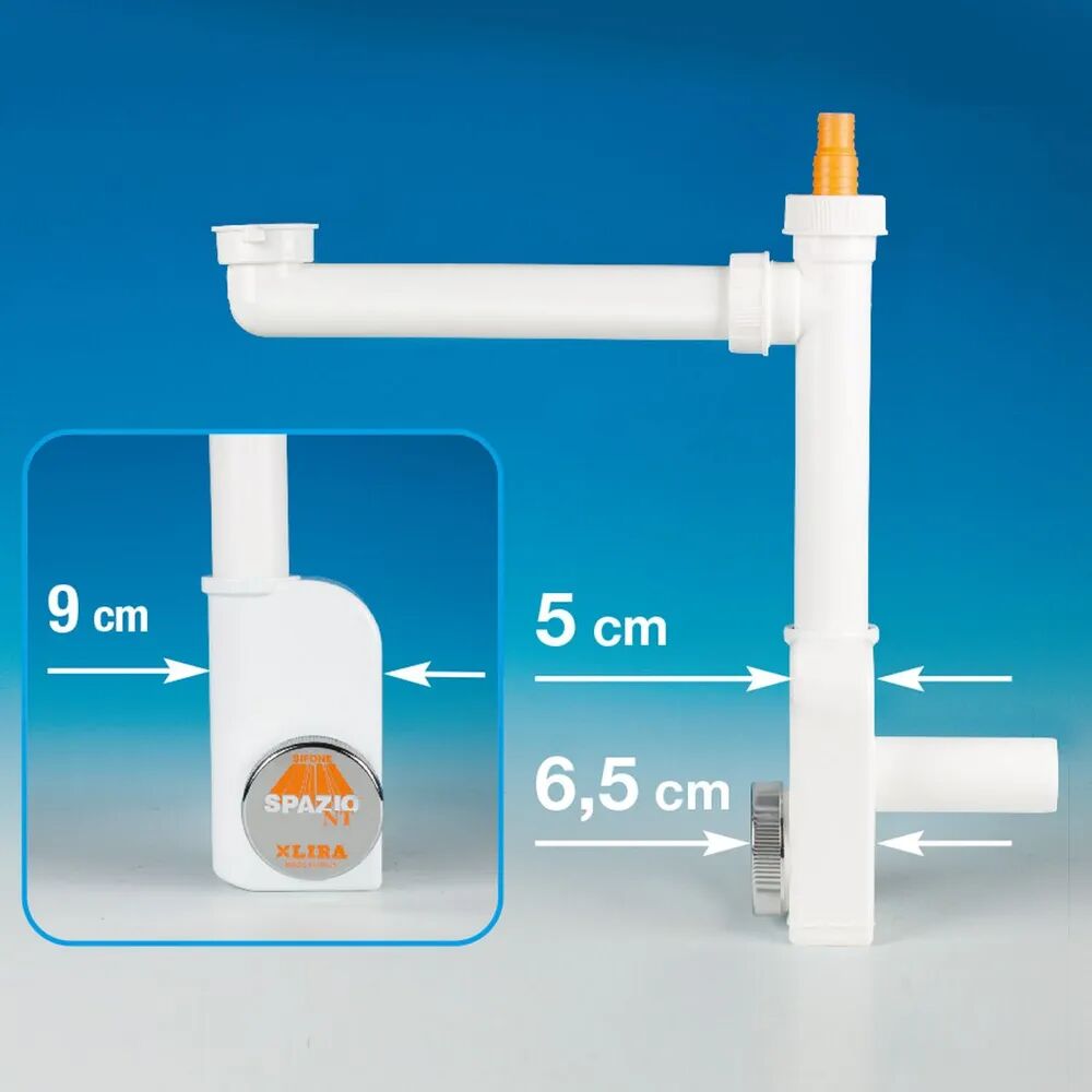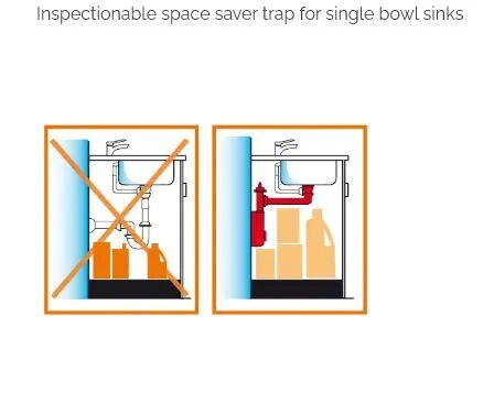 - Компактный сифон для моек с одной чашей. Конструкция сифона позволяет организовать отвод воды так, что обеспечивает экономию места внутри корпуса под мойкой
