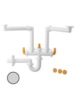 - Сифон предназначен для подключения кухонных моек, имеющих две раковины, к канализационной системе, для чего на данном сифоне присутствует двойной разборный выпуск
