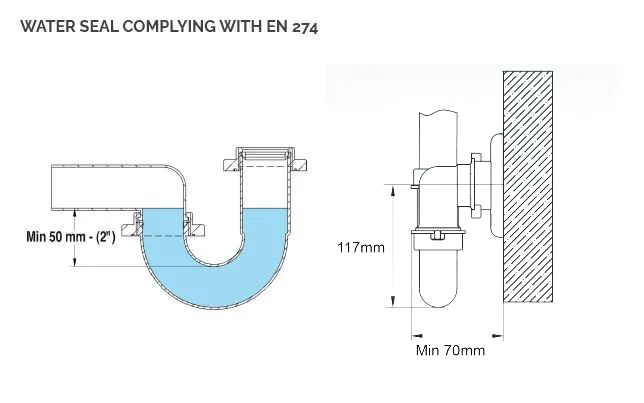 - Водяной затвор соответствующий стандарту EN274