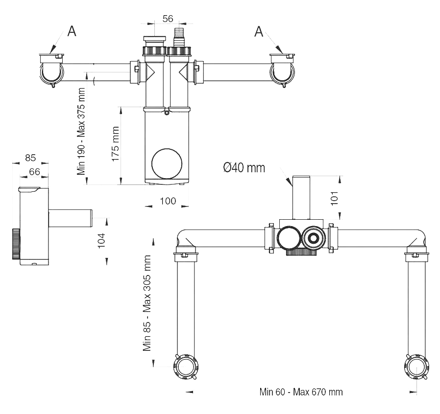 - Диаметр подключения к канализационной трубе 40 мм