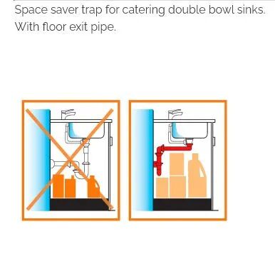 - Сифон Spazio позволяет оптимизировать пространство под мойкой и дает возможность установки встраиваемого мусорного ведра, системы сортировки или просто освободить место для хранения бытовых принадлежностей